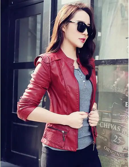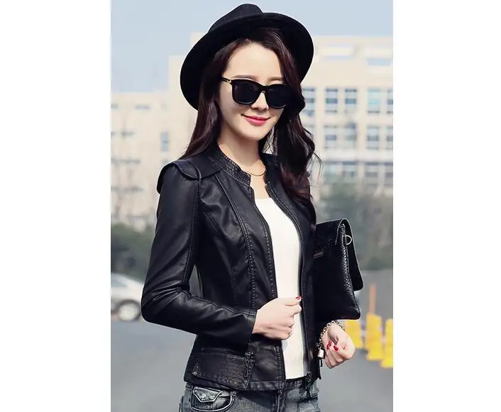 Женская Короткая кожаная куртка, однотонная Повседневная приталенная куртка из искусственной кожи с воротником-стойкой в уличном стиле, осень 20120