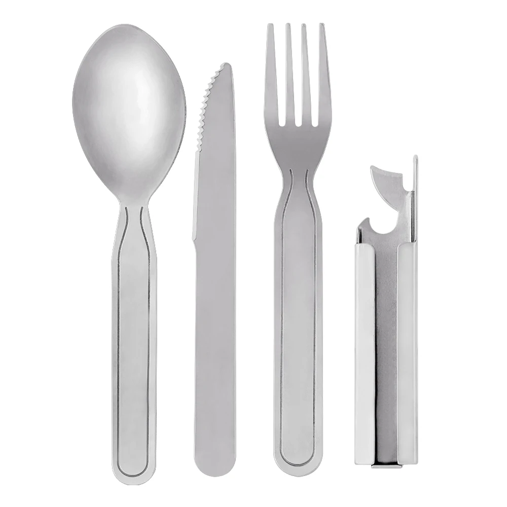 Компактный и портативный набор высококачественных ножей из нержавеющей стали, вилок, ложек и открывалок для бутылок, идеальный выбор для кемпинга, походов, альпинизма и пикника на открытом воздухе.Особенности: