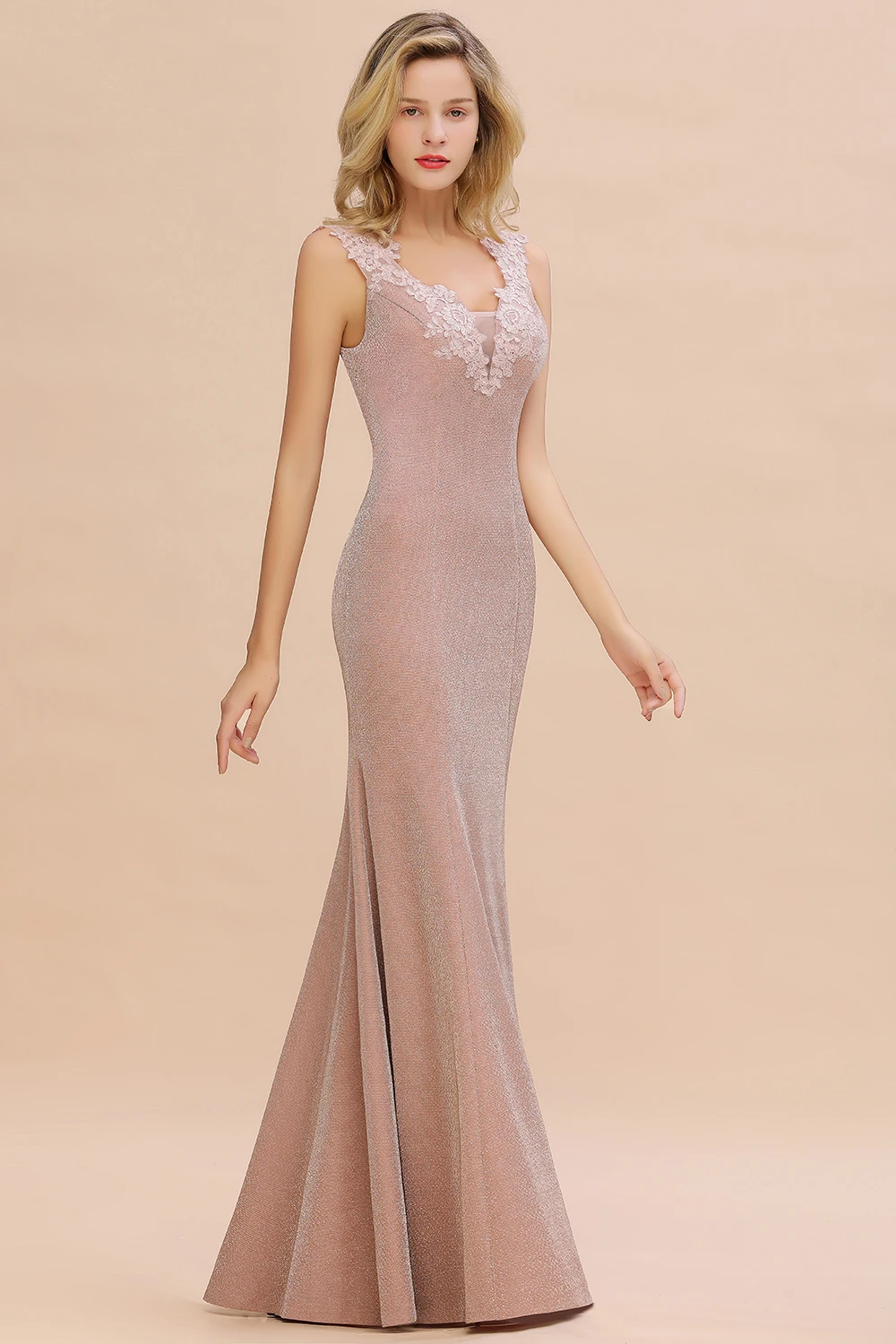 Длинное вечернее платье-Русалка цвета розового золота, элегантное о...