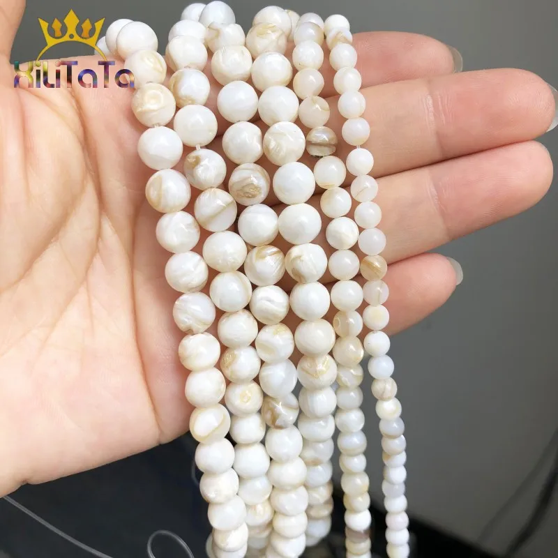 Наименование товара:Бусины из натурального камня, белая ракушка, круглые бусины-разделители для украшений, сделай сам, браслет, серьги-гвоздики, аксессуары 15 дюймов, 4/6/8 мм