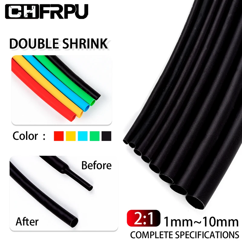 Термоусадочная трубка, 5 метров, диаметр 2:1, черный, красный, зеленый, синий, желтый, 1, 2, 3, 5, 6, 8, 10 мм