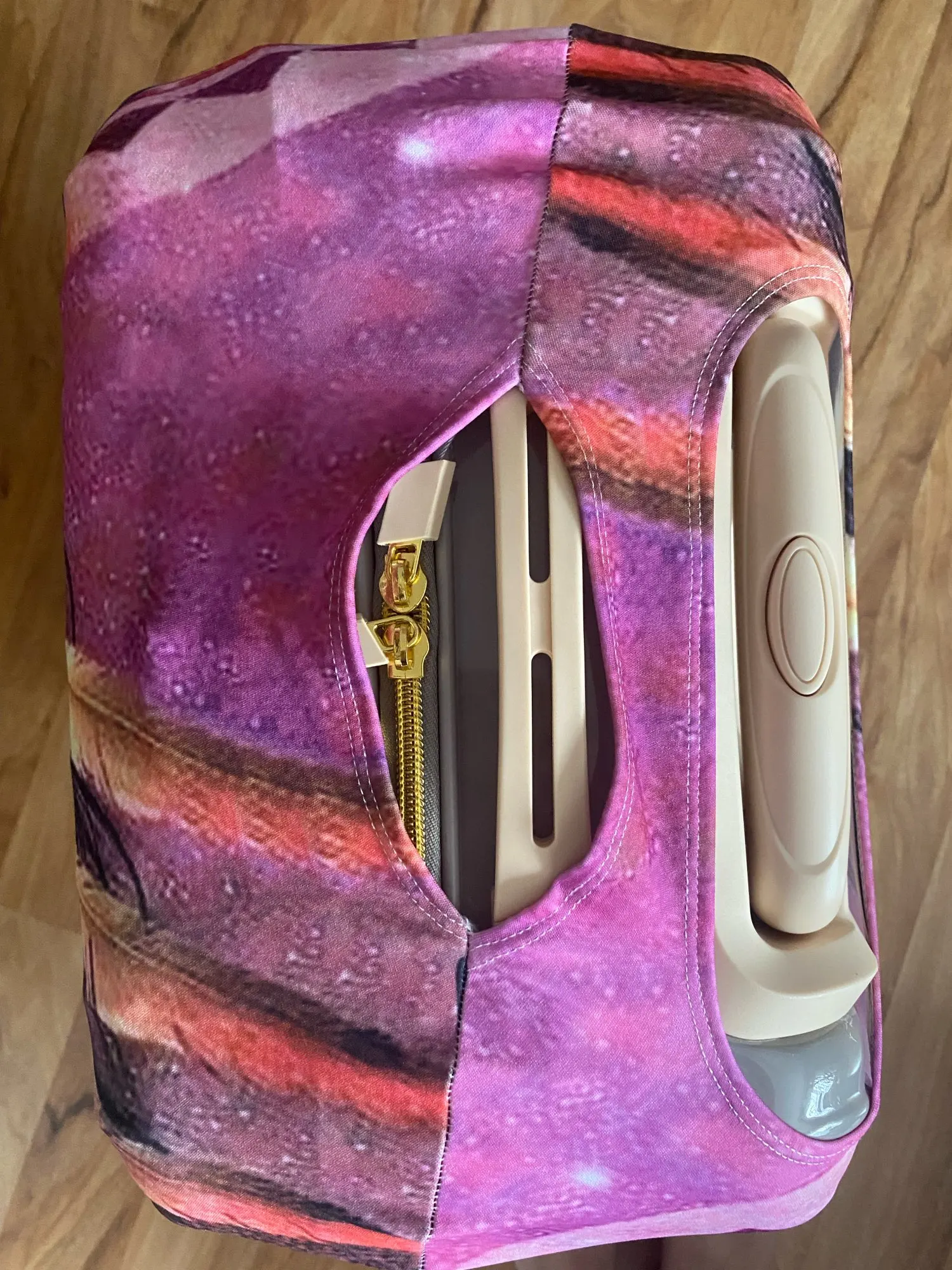Хороший чехол, красивый. Жаль только боковое отделение для ручки не содержит замка для возможности его закрыть, если таковой ручки на чемодане нет, а на чемоданах размера S, такие боковые ручки редкость, придётся зашивать вручную, это пожалуй единственный пока минус чехла