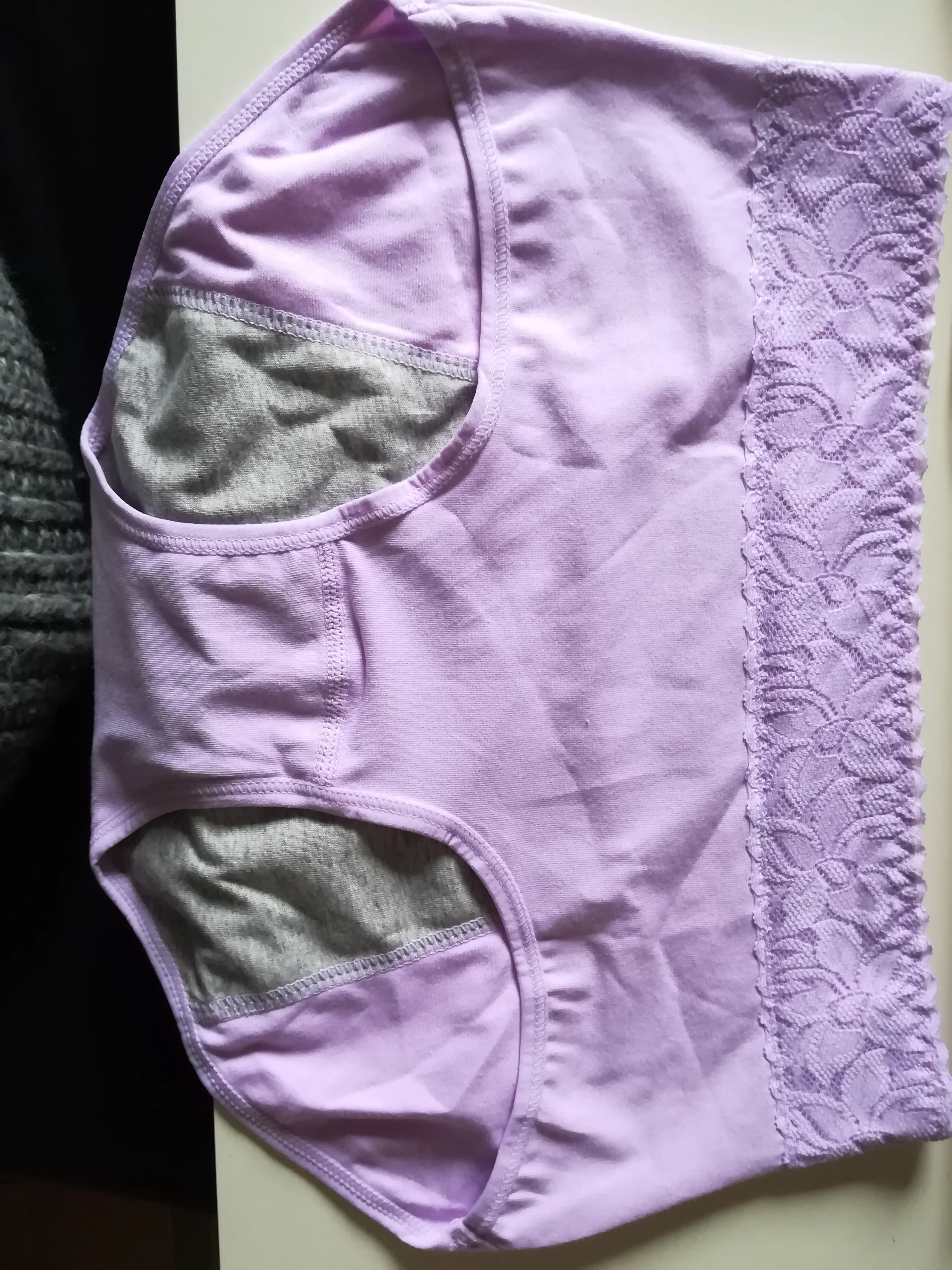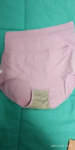 Трусы очень понравились. Приятная плотная ткань (хлопок), не просвечивает. Пока не надела казались какими-то громоздкими, но на теле смотрятся вполне симпатично. Швы ровные, ничего нигде не торчит. На объем бедер 95 размер L оказался прямо в самый раз, если чуть наберу, то будут тесноваты. Единственное, что немного смутило - вставка сзади доходит аж до резинки, а спереди она находится очень низко, в результате есть вероятность протекания именно спереди. Походила в них в последний день со скудными выделениями, для дома вполне подойдут. Да и на улицу, не надолго, я думаю, можно в них выйти, а вот на работу я бы не стала всё же рисковать и ехать в них. Либо надо брать с собой вторую пару, чтобы можно было переодеться, в случае чего