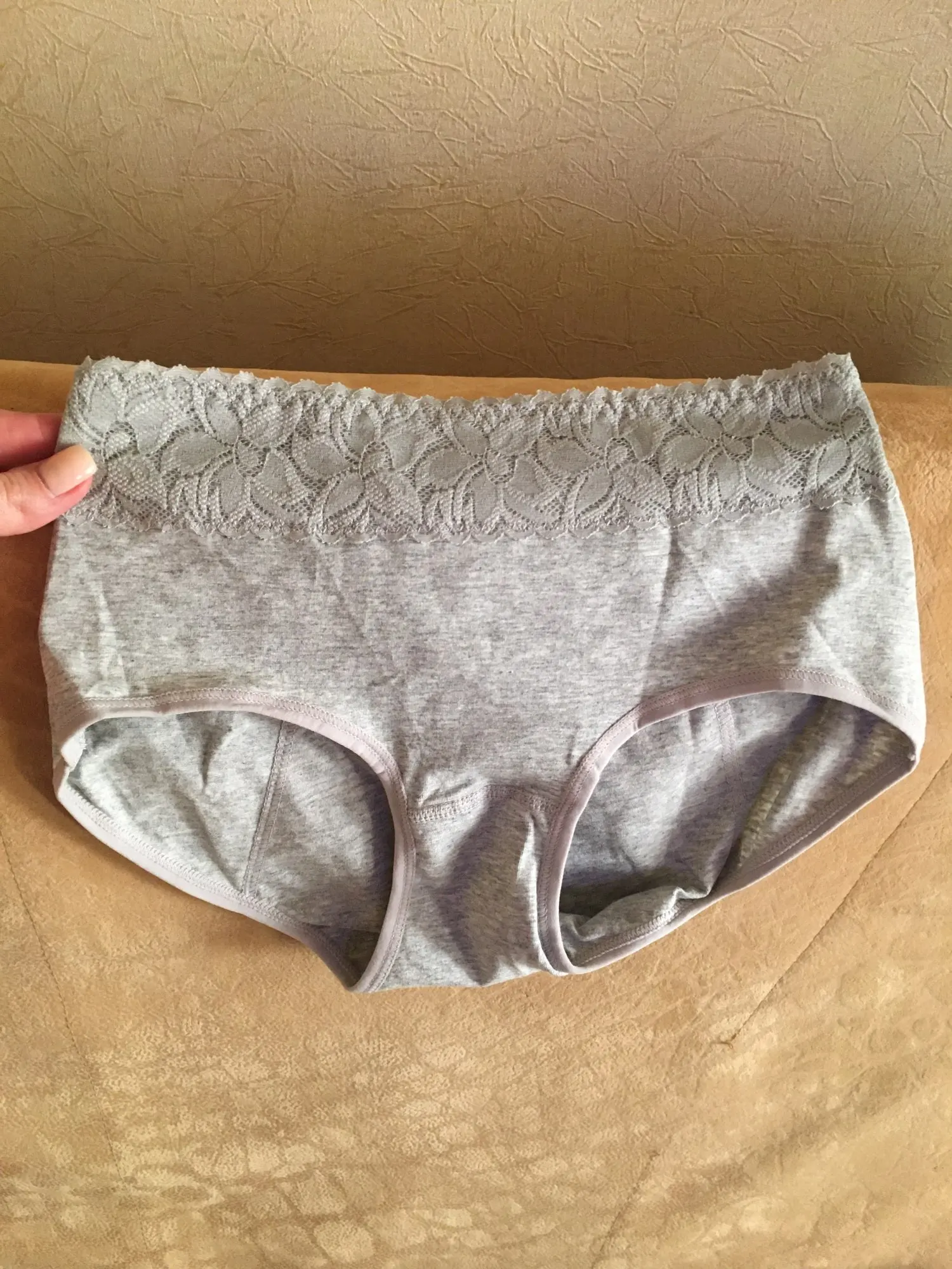 пришло быстро, размер L ну очень маленький, максимум на 42. На мой 44 еле натянула. Тянутся плохо, при стирке скорее всего сядут еще. Когда получила, подумала, что на ребенка. А так симпотные, с кружавчиками.
