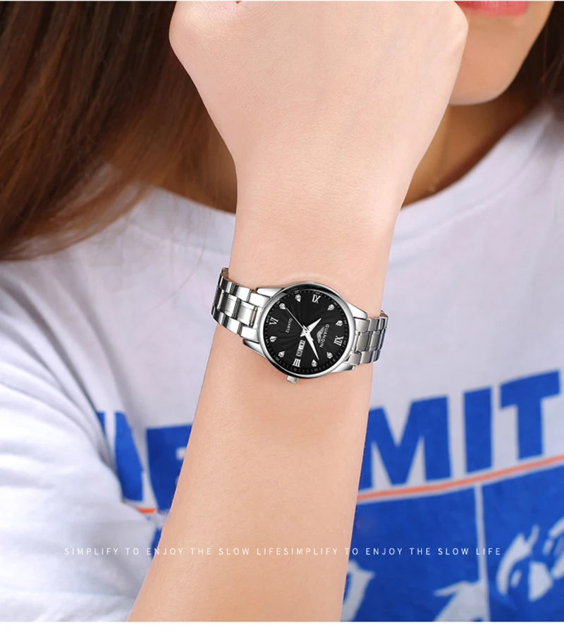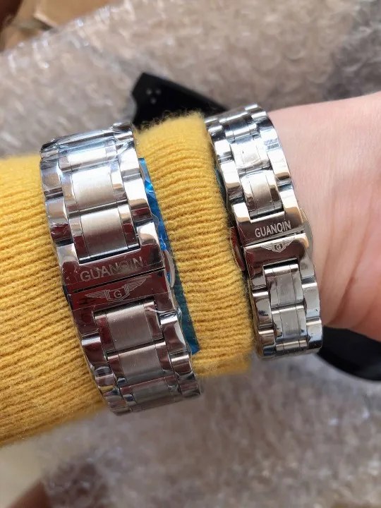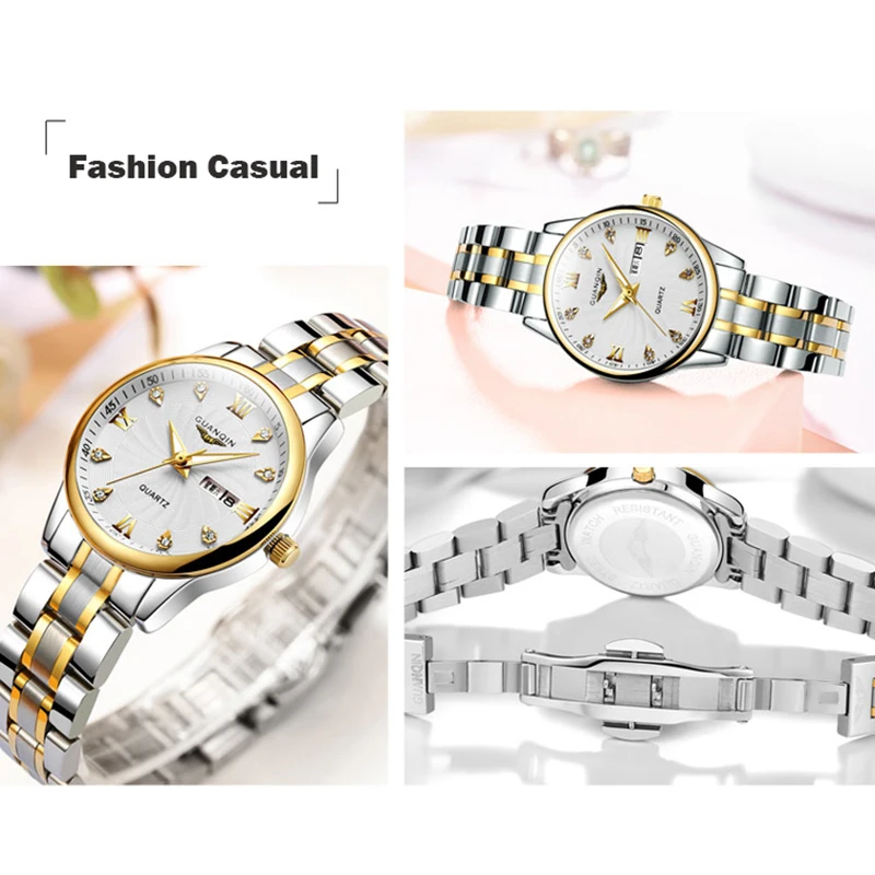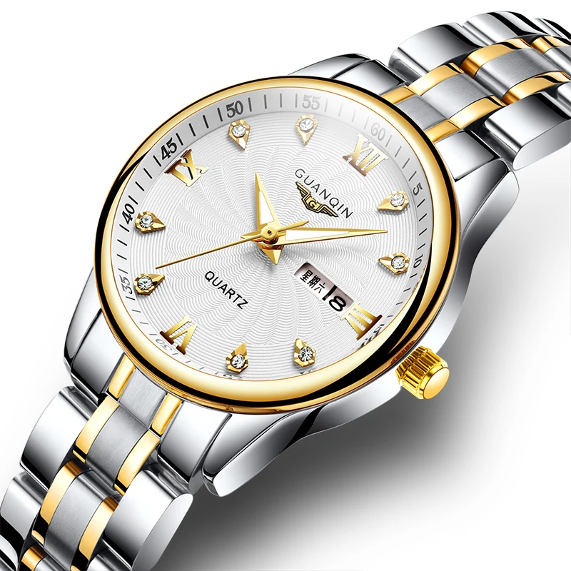 Набор часов GUANQIN для пар, роскошные мужские и женские наручные часы со стразами, кварцевые часы из нержавеющей стали, 2019