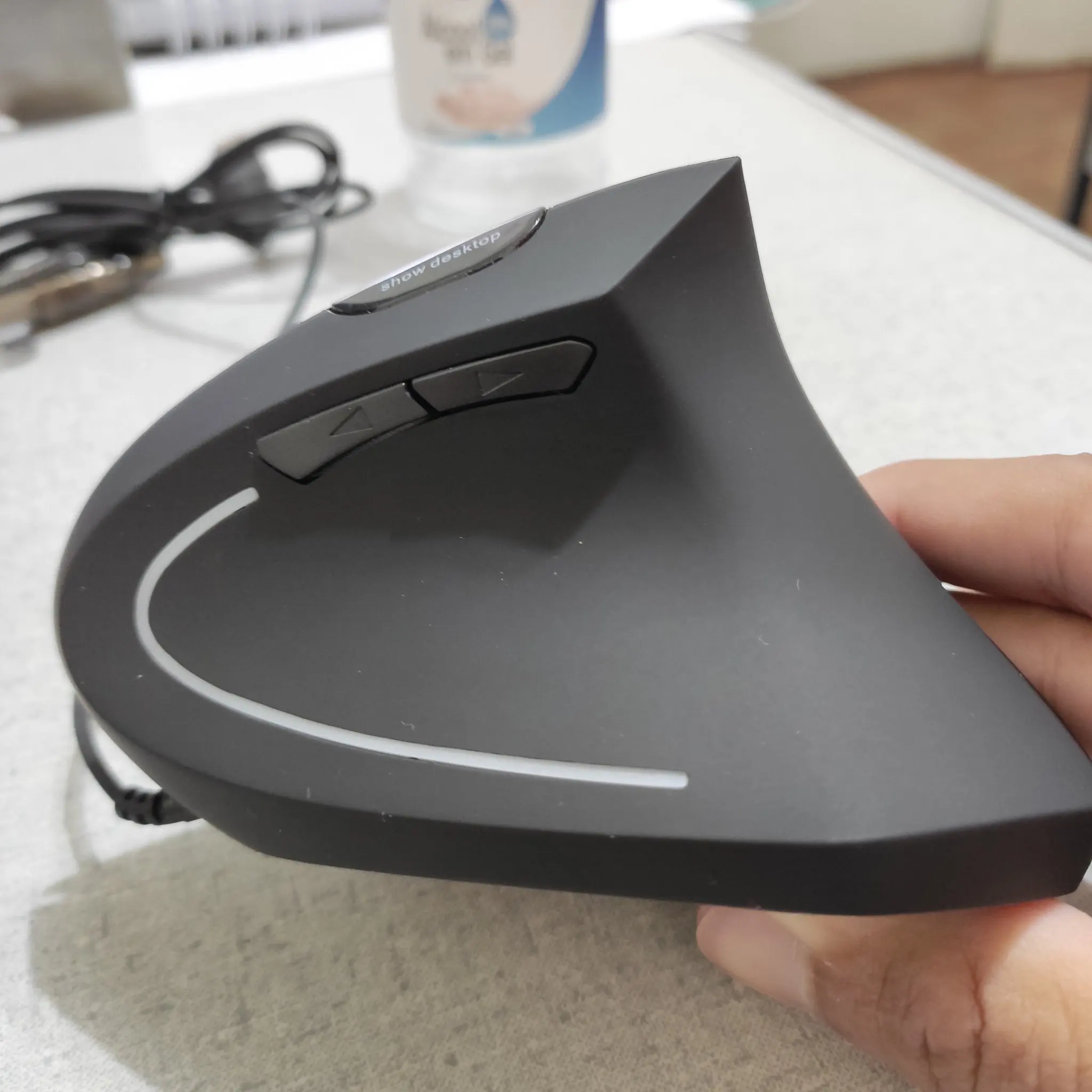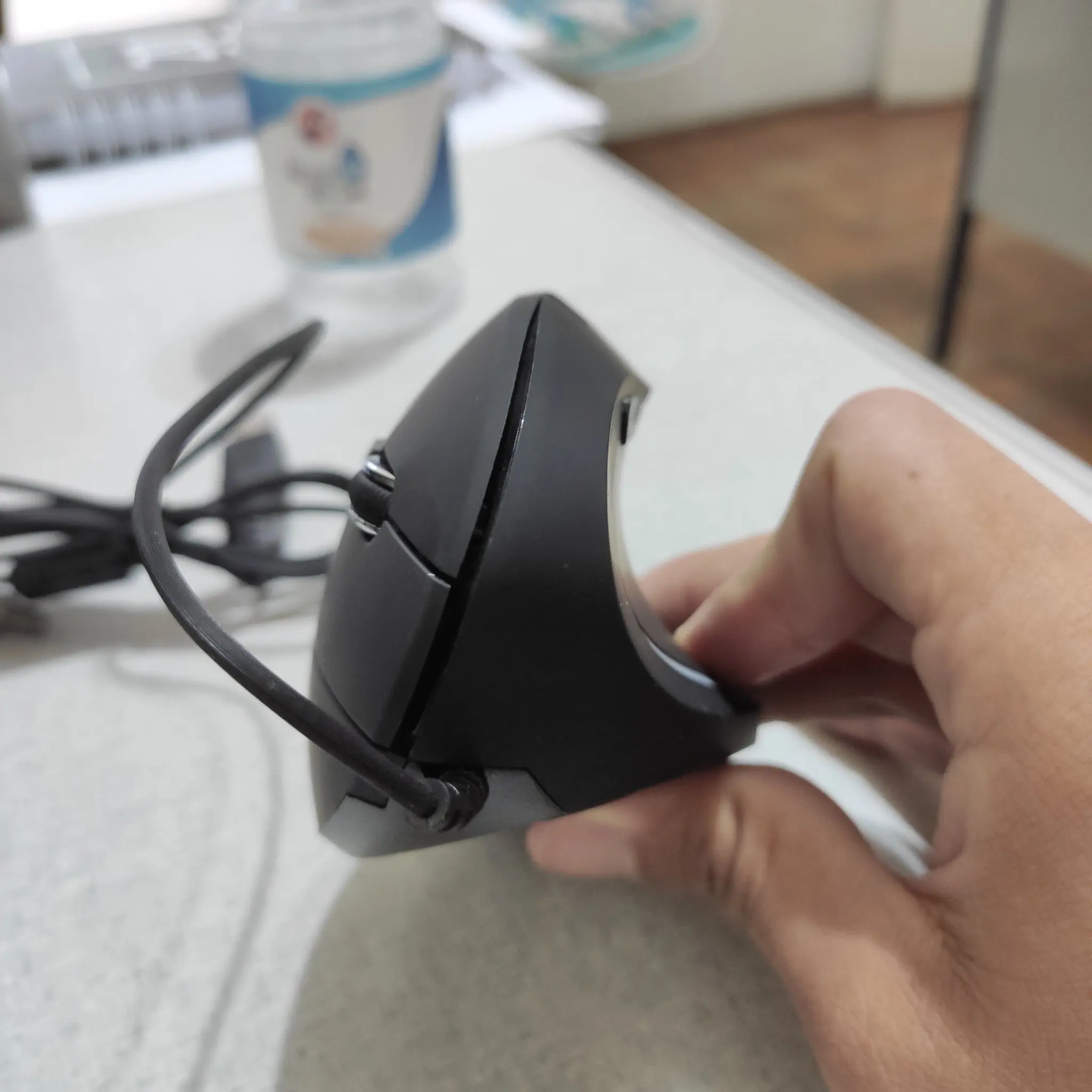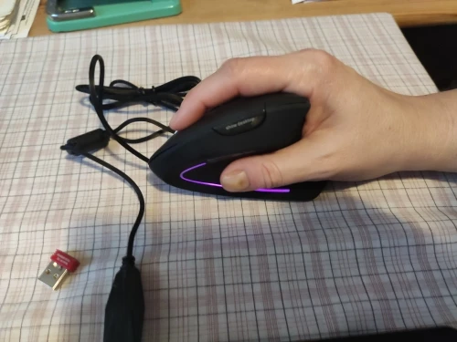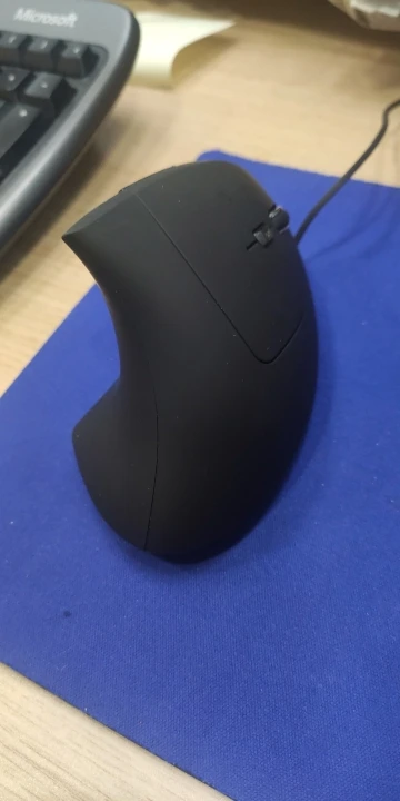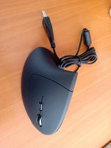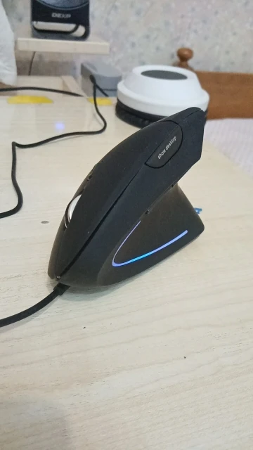 Мышь выполнена качественно, выглядит хорошо. Плюсы: 1. Да, кисть не вывернута теперь до предела внутрь. Минусы: 1. Если надо точно кликать, будет сложнее работать. У обычной мыши вы кликаете нажатием сверху вниз, при этом мышь прижата весом ладони и не смещается. Тут мышь не прижата рукой и кликаете вы нажатием вбок. При этом происходит небольшое смещение мыши от нажатия пальцем. При нажатии на мелкие элементы курсор часто с них уходит. Приходится нажимать не одним указательным пальцем, а еще давить ему навстречу большим пальцем. В итоге вы кликаете двумя пальцами, а не одним. 2. Т.к. ладонь не лежит на мыши, а стоит ребром на столе, то косточка в основании ладони нагружается больше. 3. Кнопки туговаты. 4. ПКМ расположена так, что мои три пальца еле умещаются на ней и мешают прокручивать колесико указательным пальцем. Людям с небольшой ладонью или узкими пальцами будет удобнее. У кого широкая кисть - лучше не покупайте.