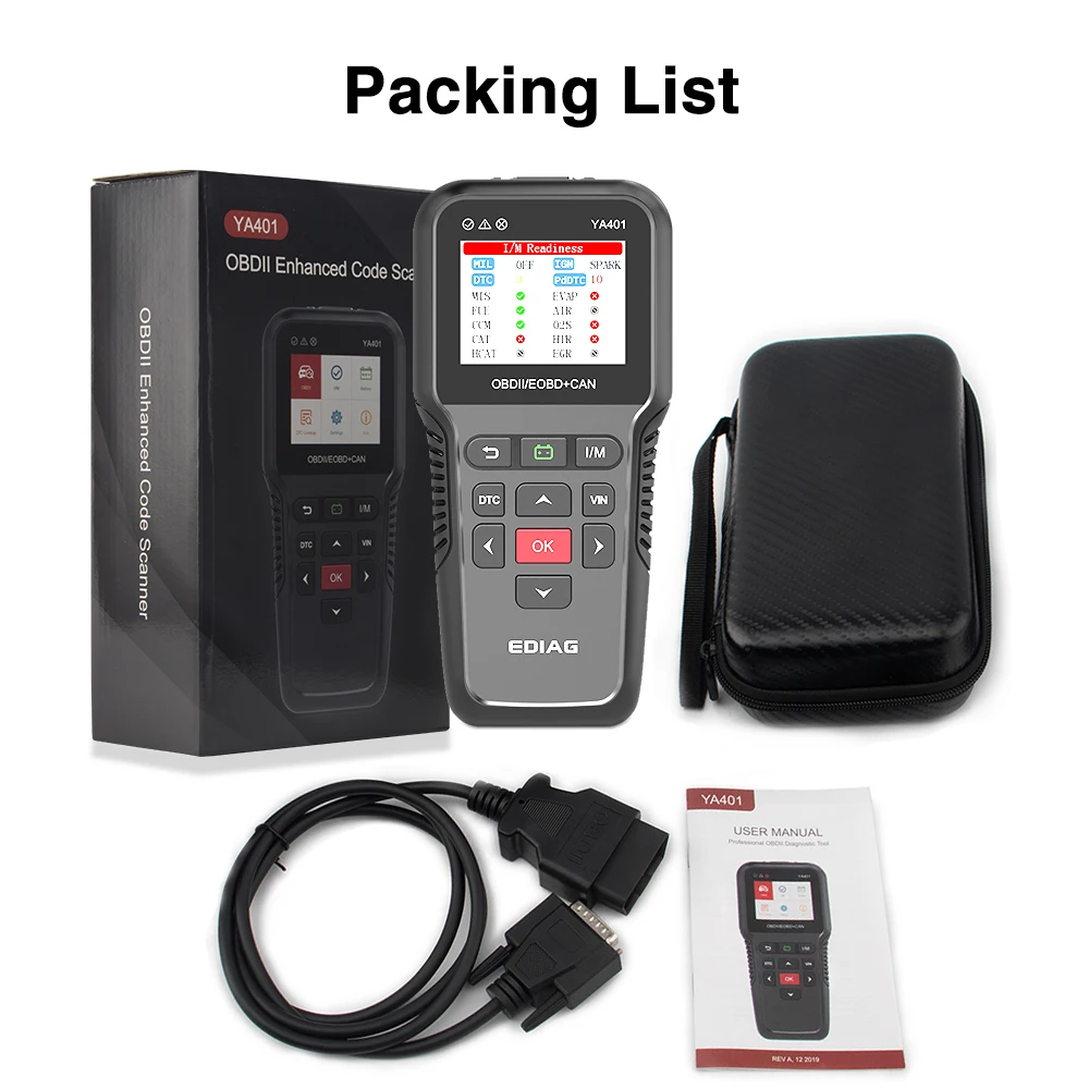 1 шт. * YA401 сканер1 шт. * Руководство пользователя на английском языке1 шт. * Кабель OBDII1 шт. * защитный чехол