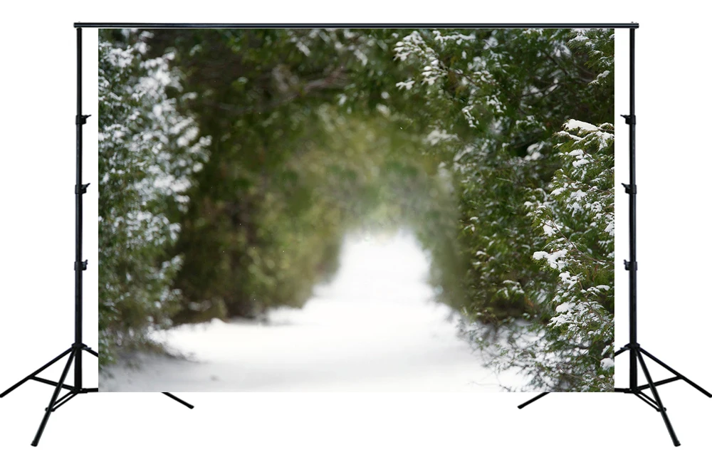 Фон для фотостудии с изображением зимнего снежного леса дороги арки пейзажа Рождества рождественской елки баннера для детской портретной съемки