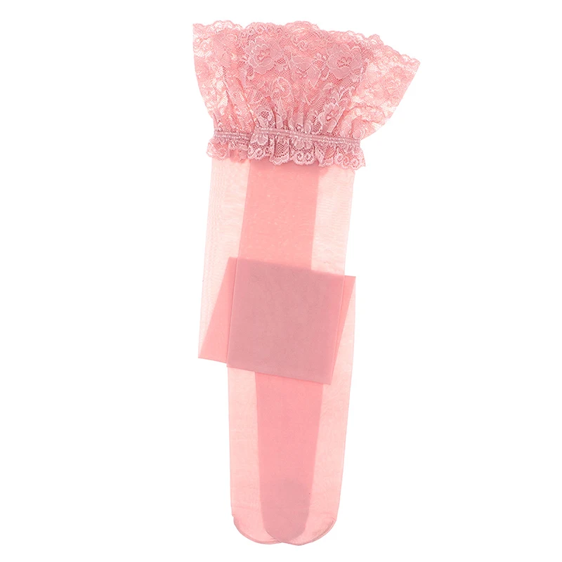 Широкое красивое кружево под пояс силикона нет, цвет приглушенный розовый. Чисто визуально маленькие прям на ребёнка с худенькими ножками , не мерила, ширина 10см,если выйдет натянуть, то одноразовые-порвуться, тоненькие чулочки. Огарчена заказом! Доставка до М. О. в объединённой посылке месяц.