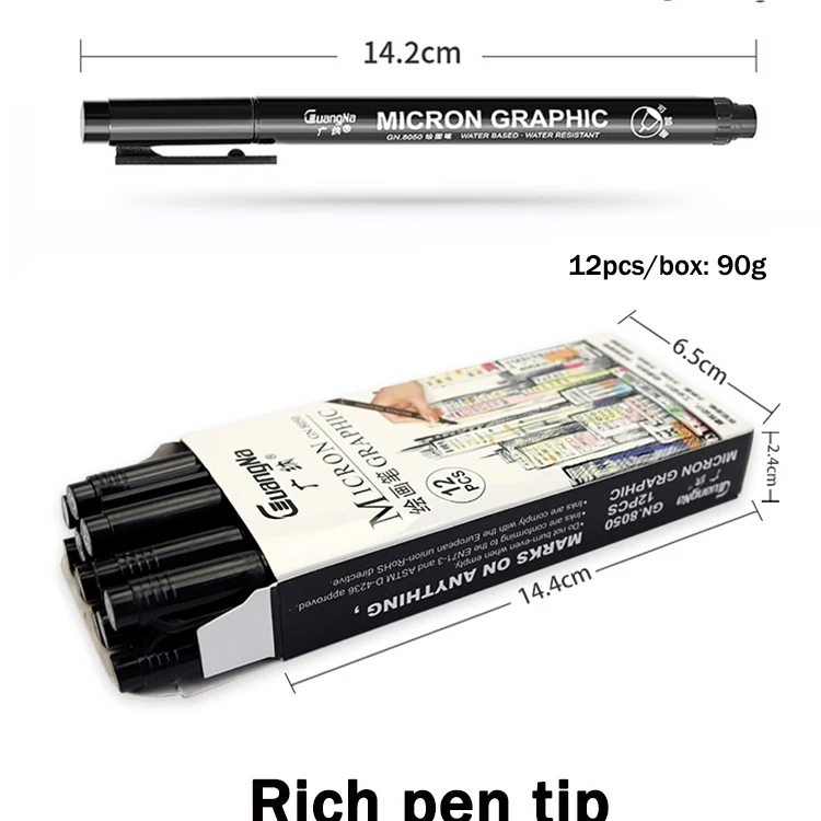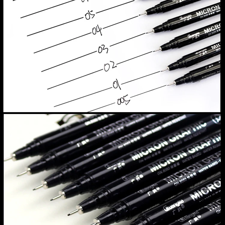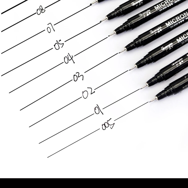 Guangna Рисование микрон графическая игла ручка черный эскиз крюк линия ручка 005 01 02 03 04 05 07 08 1,0 2,0 3,0 кисть тонкие линии 8050
