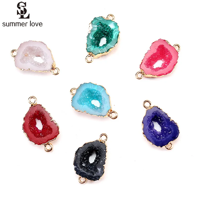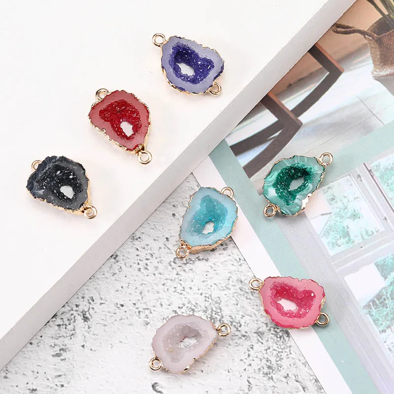 Коннектор из смолы и камня для самостоятельного изготовления поддельных друз, серьги-подвески для браслетов, ожерелий, 2 отверстия, комплектующие для ювелирных изделий, 10 шт.
