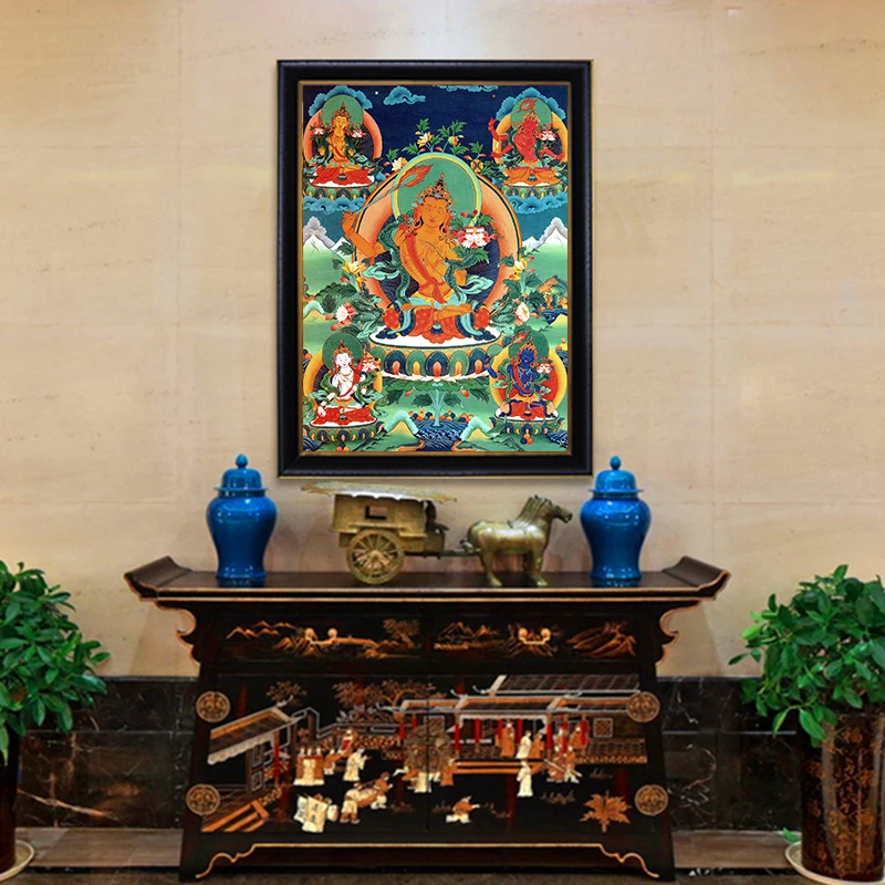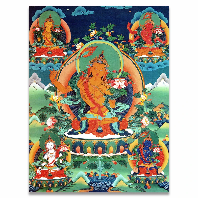 Картина на холсте Thangka Five манджушри, Будда, тибетская, индийская, китайская религия, художественная Настенная картина, домашний декор