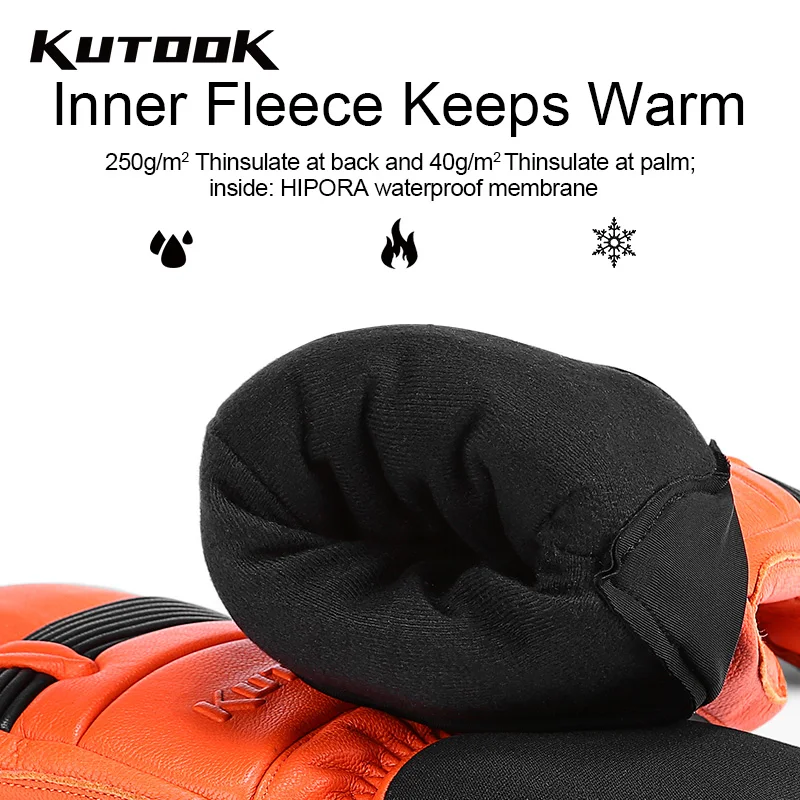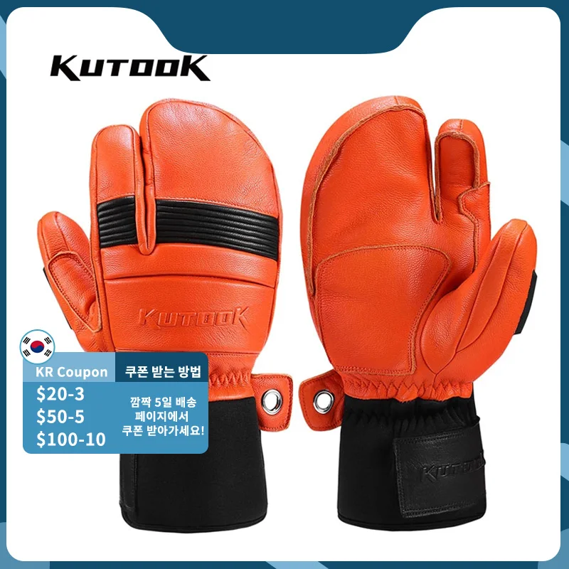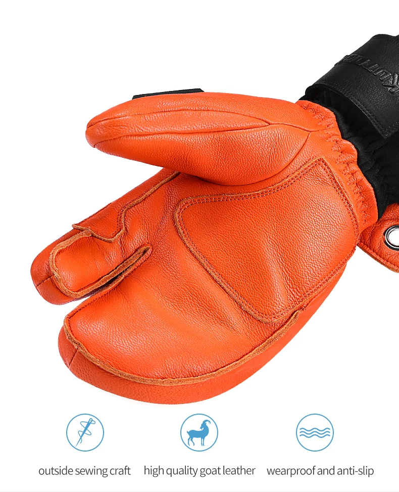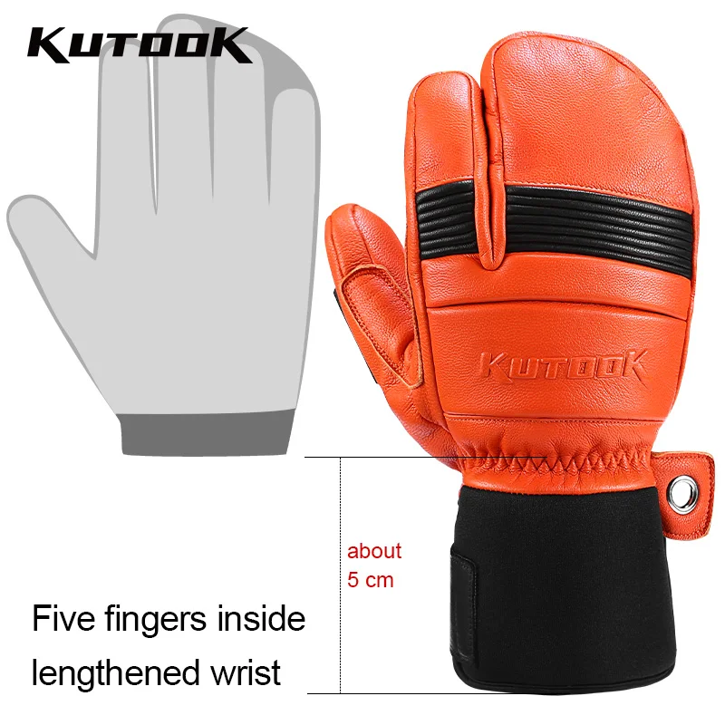 Зимние лыжные перчатки kutake, водонепроницаемые, из козьей кожи, для сноуборда, зимние лыжные варежки, ветрозащитные, регулируемые