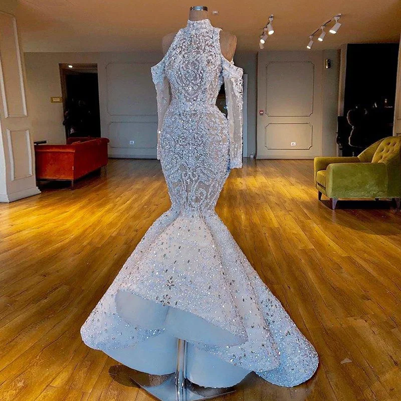 2020 прозрачные вечерние платья с длинным рукавом и высоким воротни...