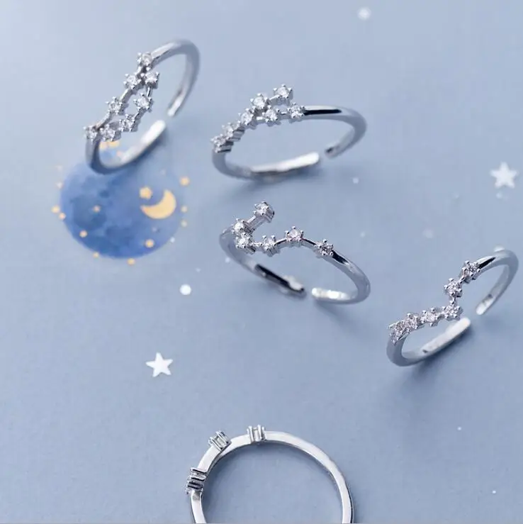 Colusiwei 12 созвездий палец кольца 925 стерлингового серебра Ослеп...