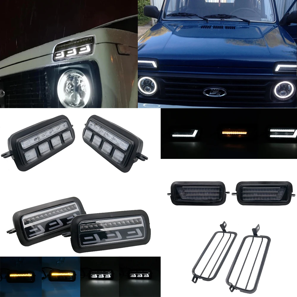 Пара аксессуаров для стайлинга автомобилей Светодиодный дневные ходовые огни для Lada Niva 4x4 1995- 2019 с ходовым сигналом поворота лампа DRL