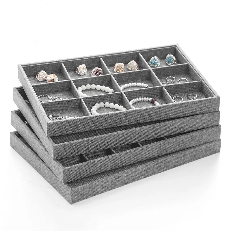 Модный серый льняной лоток для ювелирных изделий, органайзер, кольцо, серьги, чехол, держатель для браслета, ожерелье, подвеска, дисплей, лоток для ювелирных изделий, чехол для шоу