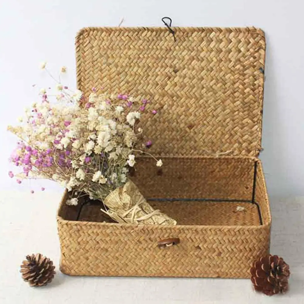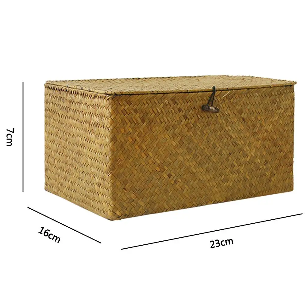 Плетеная вручную соломенная корзина из водорослей для хранения одежды, органайзер для макияжа, коробка для хранения, корзины для белья из морских водорослей, ротанговая коробка с крышкой