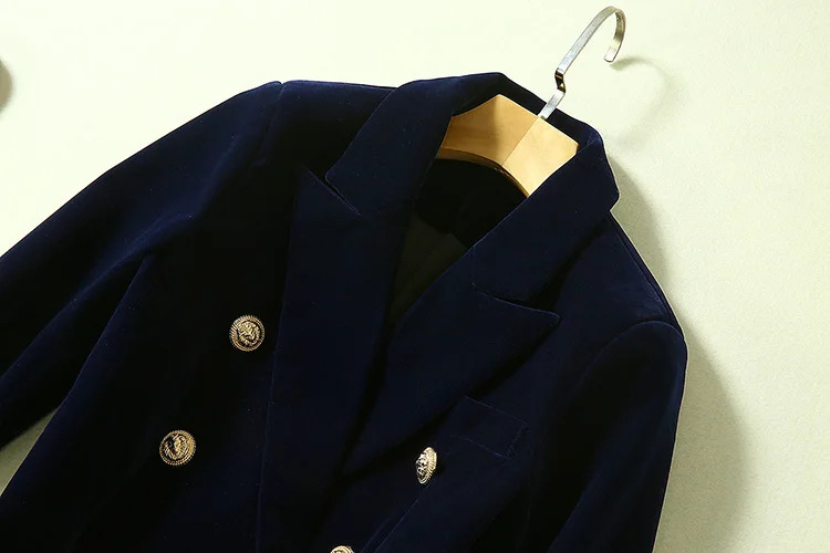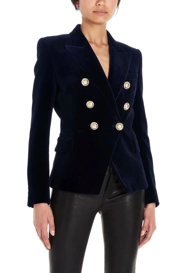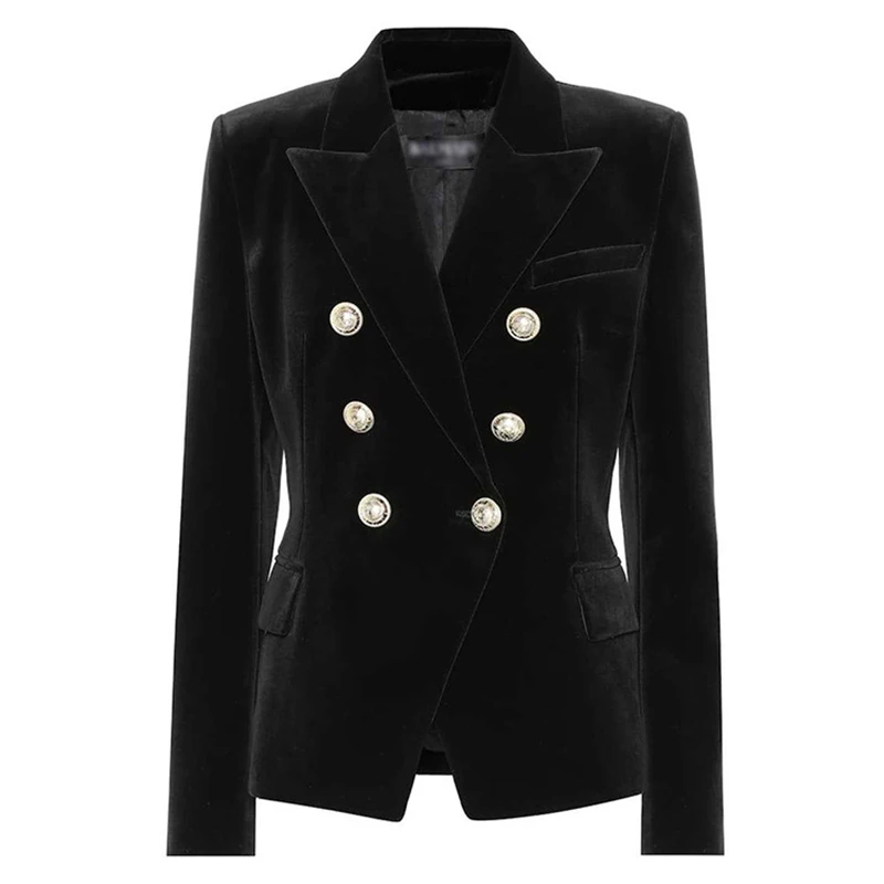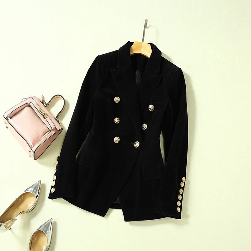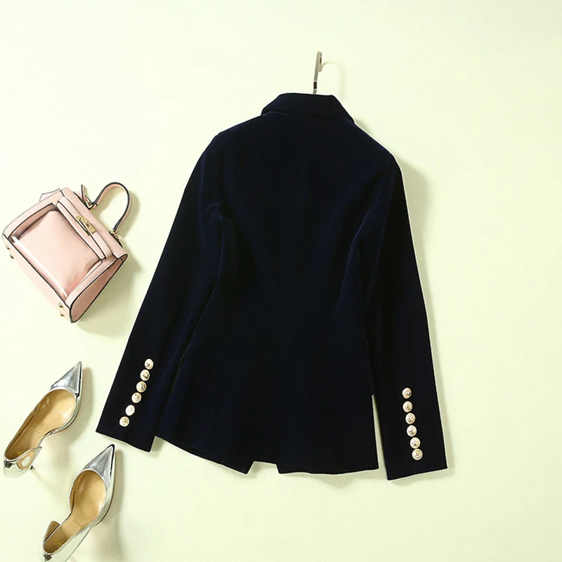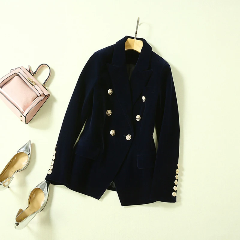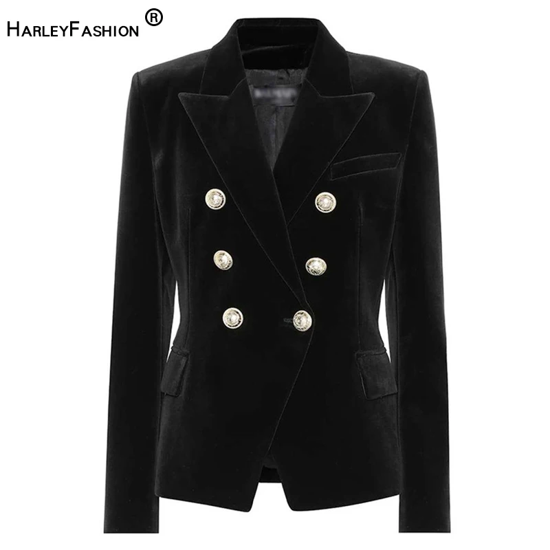 HarleyFashion Дизайнерская Женская осенне-Весенняя верхняя одежда куртки с металлическими пуговицами однотонный качественный Повседневный бархатный блейзер