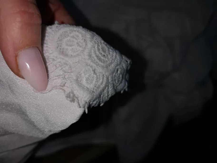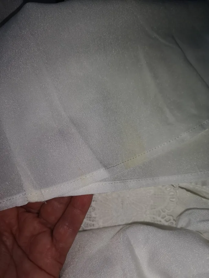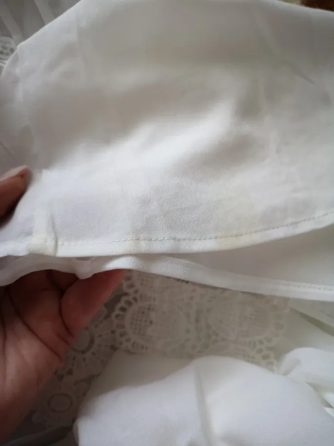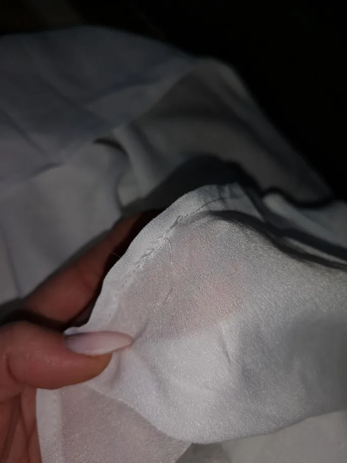 Все хорошо, только швея поставила ручкой черные и красные точки на месте окончания шва. И чтобы надеть, нужно сначала постирать .