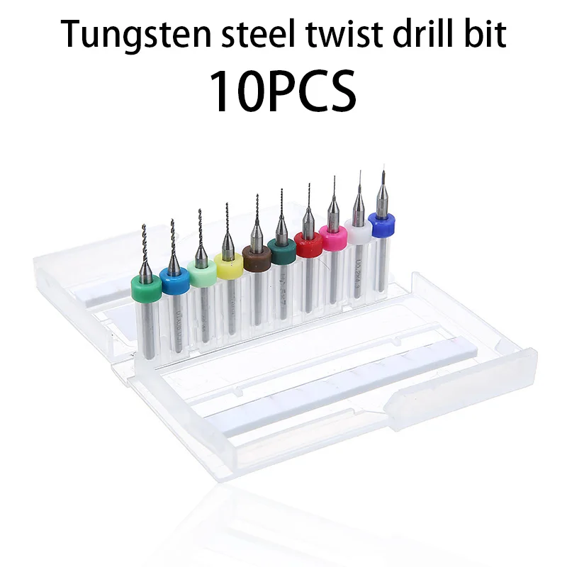 10 шт. мини Карбид печатная плата набор спиральных сверл 0,10,20,30,40,50,60,70,80,91,0 мм для ювелирного вращающегося инструмента ЧПУ гравировального инструмента