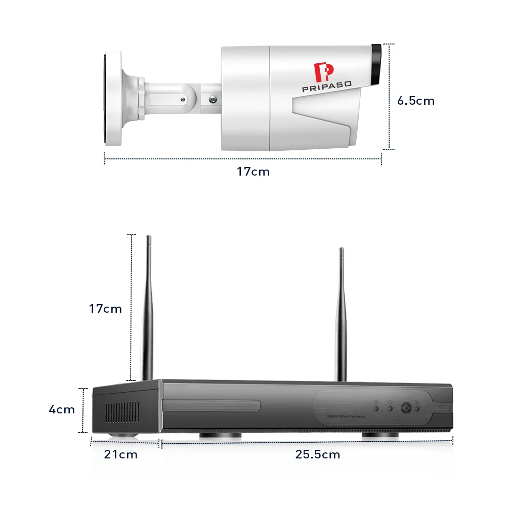 Основная особенность:* Поддержка Onvif 2,0, может работать с pripaso NVR и другими брендовыми NVR, поддерживающими onvif.* HD 720P Разрешение, линзы фокусное расстояние 3,6 мм, выбор объектива схема (для того, чтобы определить человека стандартам)* H.264 сжатие видео, более высокое определение изображения, более низкая скорость бит.* Обнаружение движения и оповещение по электронной почте, камера может установить несколько зон обнаружения движения, как только camrea обнаружит любой movment он может отправить электронную почту или загрузить сигнал тревоги на FTP.* Встроенный IR-CUT фильтр, рабочий день и ночь.* Определение места происшествия видео с умным воспроизведением, Поддержка android и ios, подключение и воспроизведение удаленного просмотра через mulit платформу* Водонепроницаемая ip-камера, водонепроницаемый металлический чехол IP66, подходит для использования в помещении/на открытом воздухе. Спецификация: Сжатие видео: H.264Сенсор: 1 МП CMOS сенсорРазрешение видео: 1280*720PРегулируемый; Поддержка частоты кадров от 1 до 30 кадров/сек регулируетсяОбъектив: 3,6 мм по умолчанию (2,8 мм/6 мм/8 мм по желанию)Фильтр IR Cut: ДаБеспроводной: wifi 802.11b/g/nОбнаружение движения и оповещение по электронной почте: ПоддержкаРазъем: 1 шт. порт LAN/1 шт. разъем питания/1 шт. Кнопка сбросаМобильный мониторинг: Поддержка IOS и Android с приложениемИК-светодиодный: 3 шт. светодиодный массив с 25 метровым ИК-расстояниемТемпература Woring: от-20 до 60 градусовМощность: 12V 1A для 2A Упаковка: 1 х 4CH H.265 + беспроводной сетевой цифровой видеорегистратор (Беспроводной NVR) 4 x цветная ip-камера CMOS 1.0MP IR LEDs 4x12V 1A адаптер питания для камер безопасности 1x12V 2A источник питания для NVR 1 х Мышь 1 x Руководство пользователя 1 х Набор винтов