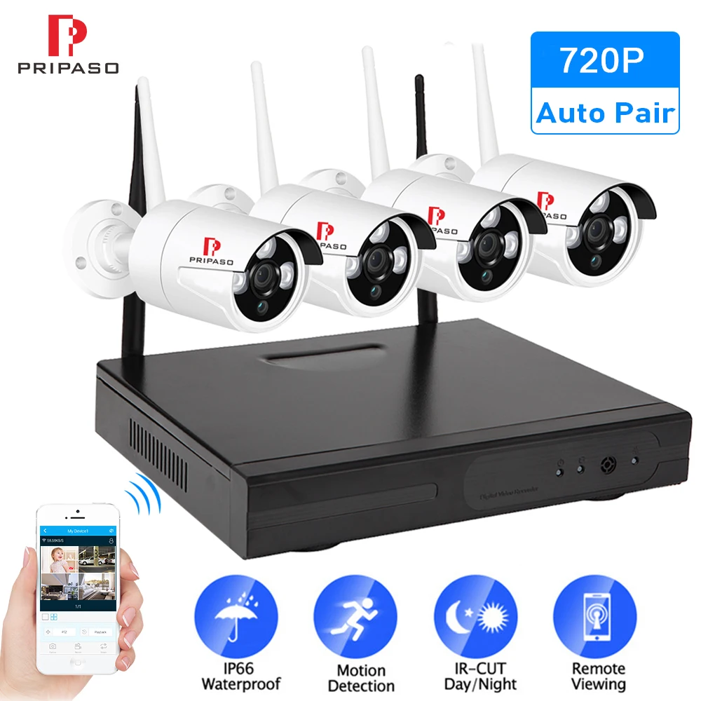 720P Беспроводная CCTV система HD WiFi ip-камера 4 шт. 1MP NVR IP IR-CUT наружная CCTV IP камера система безопасности комплект видеонаблюдения
