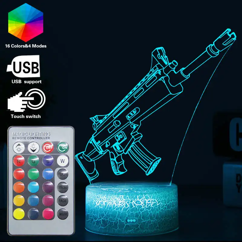 Настольная лампа с 3D иллюзией, ночные огни, винтовка, револьвер, у...