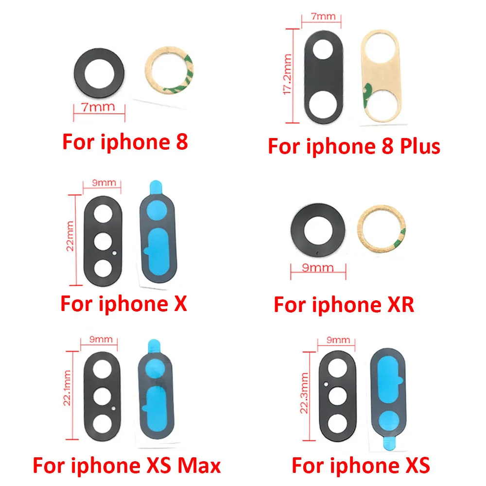 10 шт.лот, стеклянный объектив задней камеры для Iphone 6 7 8 Plus X XR XS 11 12 Pro Max с клейкими запасными частями