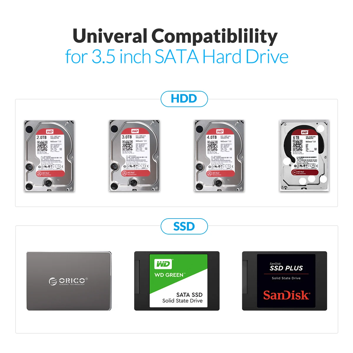 1. 【Гибкое решение для хранения данных 】: вы беспокоитесь о потере данных? Серия 95 предназначена для 4K видеомонтажа, фотографа и профессиональных пользователей, которые хотят защитить свои ценные данные. Подходит для хранения, избыточности или резервных копий, таких как видеомонтаж, резервное копирование фотографий, хранение мультимедийных файлов или даже Расширение емкости для компьютера/Mac Pro, пора получить тяжелые данные.2.【 2 отсека HDD корпус с емкостью 32 ТБ 】: 2 отсека внешнего жесткого диска, совместимые 3,5 "SATA (I / II / III) жесткие диски, общая емкость до 32 ТБ (2x16 ТБ жесткий диск), встроенный двухъядерный чип JMS567 + JMB575 SATA3.0 для обеспечения безопасности и стабильности хранения данных (без RAID, Нет функции NAS).3.【 Скорость передачи данных USB3.0 до 5 Гбит/с: Эта док-станция для жесткого диска с 2 отсеками поддерживает все жесткие диски SATA 3,5 ", Высокоскоростная передача данных с USB3.0 до SATA3.0, скорость до 5 ГБ/сек., обратная совместимость с USB 2,0/1,1, светодиодный индикатор активности состояния доступа к диску.4. 【Рассеивает теплоэффективность 】: 2 отсека HDD корпус имеет однокорпусный корпус из алюминиевого сплава, хороший в рассеивании тепла, до 4 мм толщина, которая является твердой и надежной, конструкция с вентиляционными отверстиями помогает увеличить циркуляцию воздуха и тепловую вентиляцию для эффективного охлаждения привода и всей системы для стабильной работы и увеличенного срока службы.5. 【PLUG and PLAY, HOT SWAP】: инструмент свободный дизайн монтирует диски без инструментов и винтов за считанные секунды, горячая замена поддерживается, подключи и играй. 3,5 дюймовый корпус для жесткого диска Совместим с Windows XP/ VISTA/ Windows 7/ 8/8,1/10/ Linux/ Mac 9,1/10,2 или выше компьютером и ноутбуком.