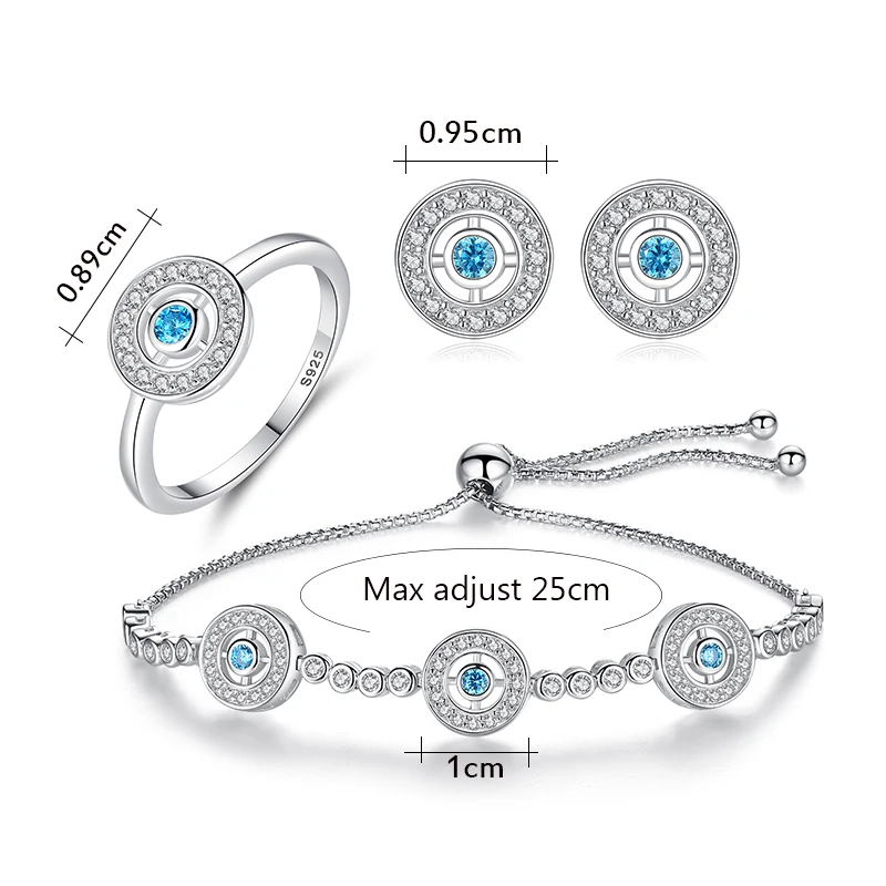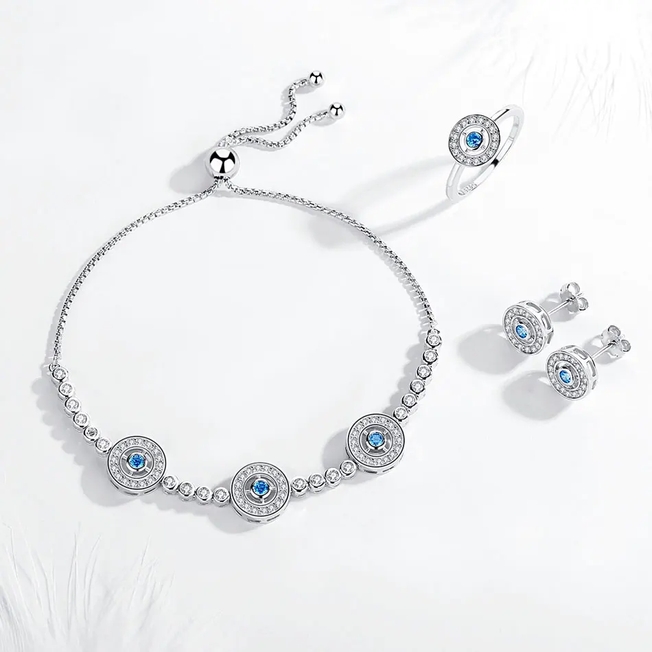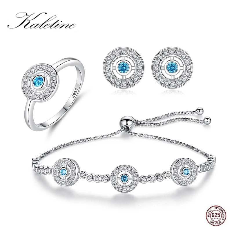 Женский ювелирный комплект из кольца и серёг KALETINE, из серебра браслет Хамса пробы, с круглым синим цирконием, для тенниса, 925