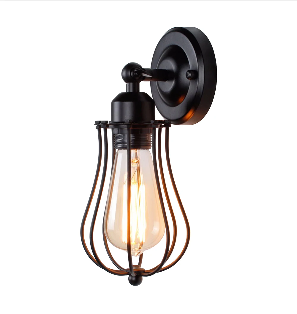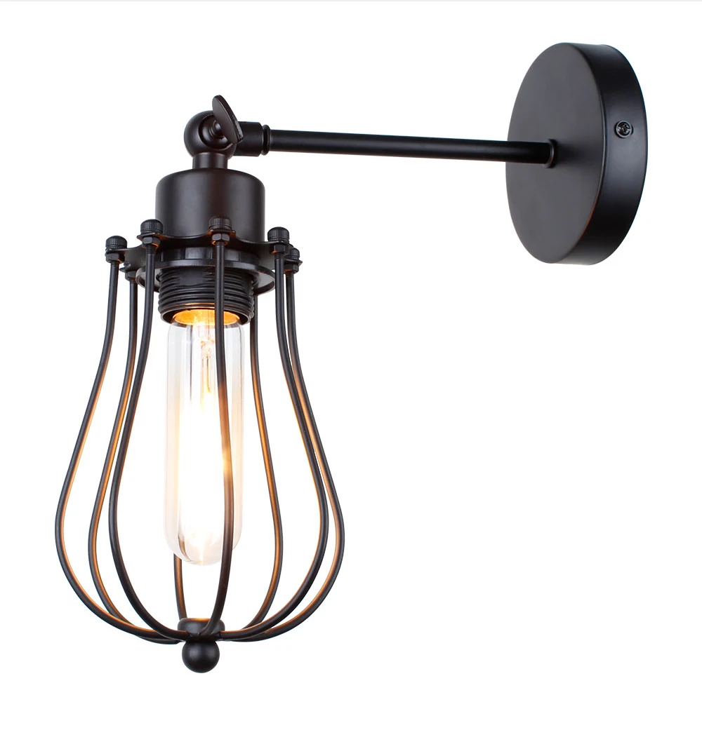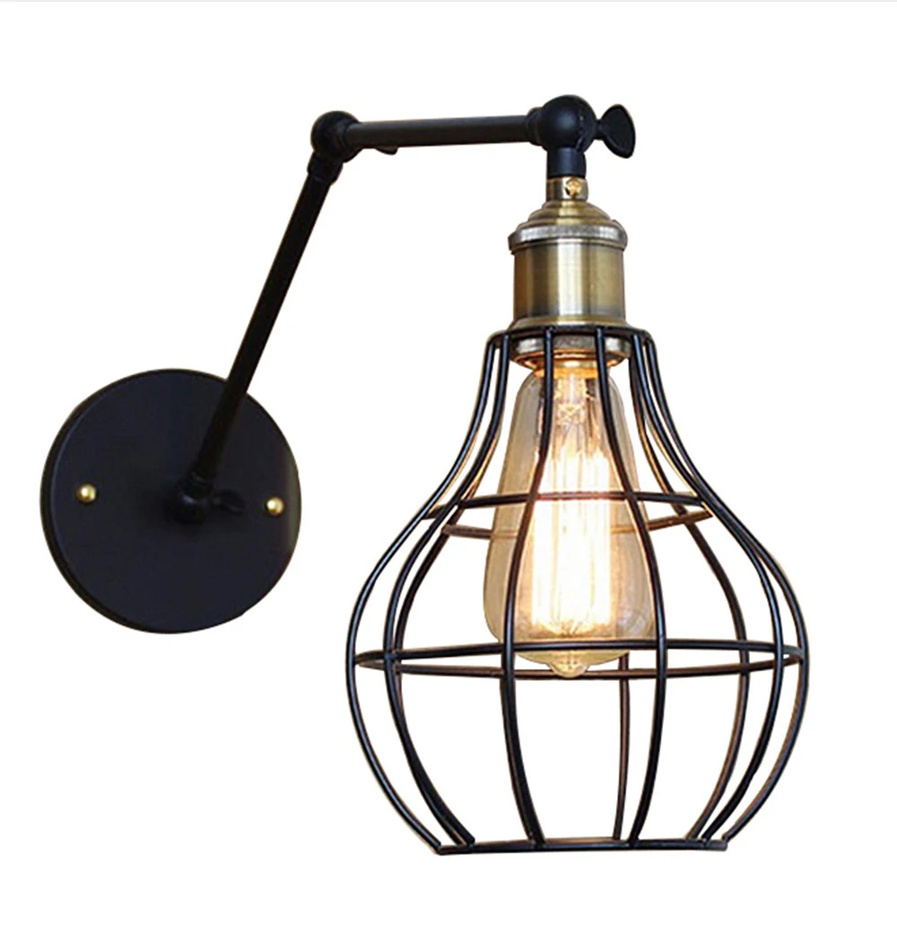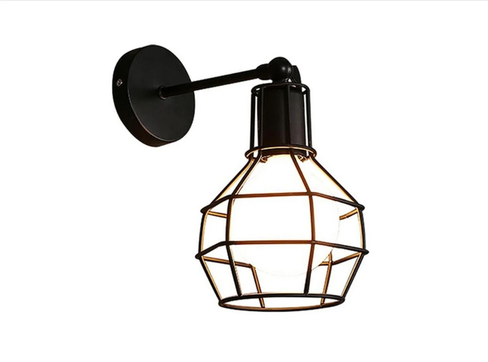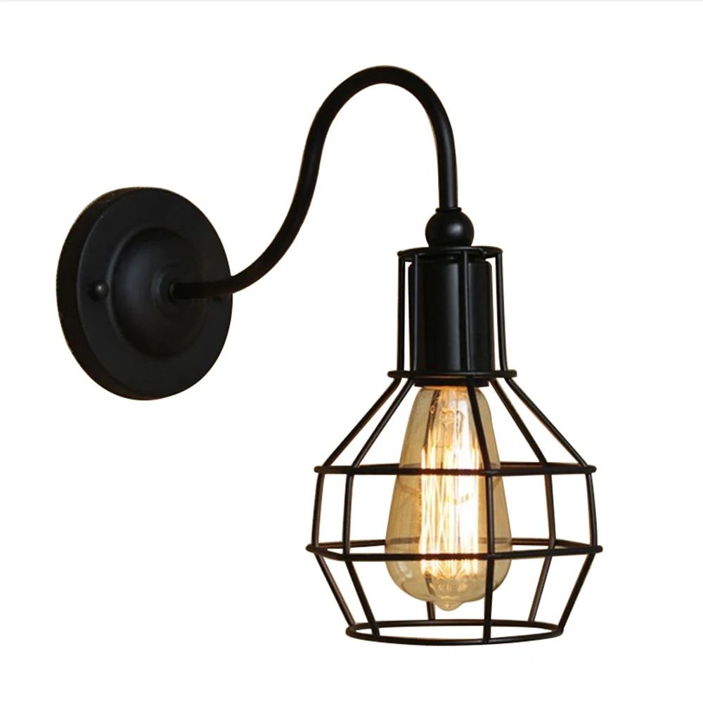 Винтажная промышленная настенная лампа, американский настенный светильник в стиле лофт, простой абажур, E27, светильник в клетку для коридора, ресторана, магазина
