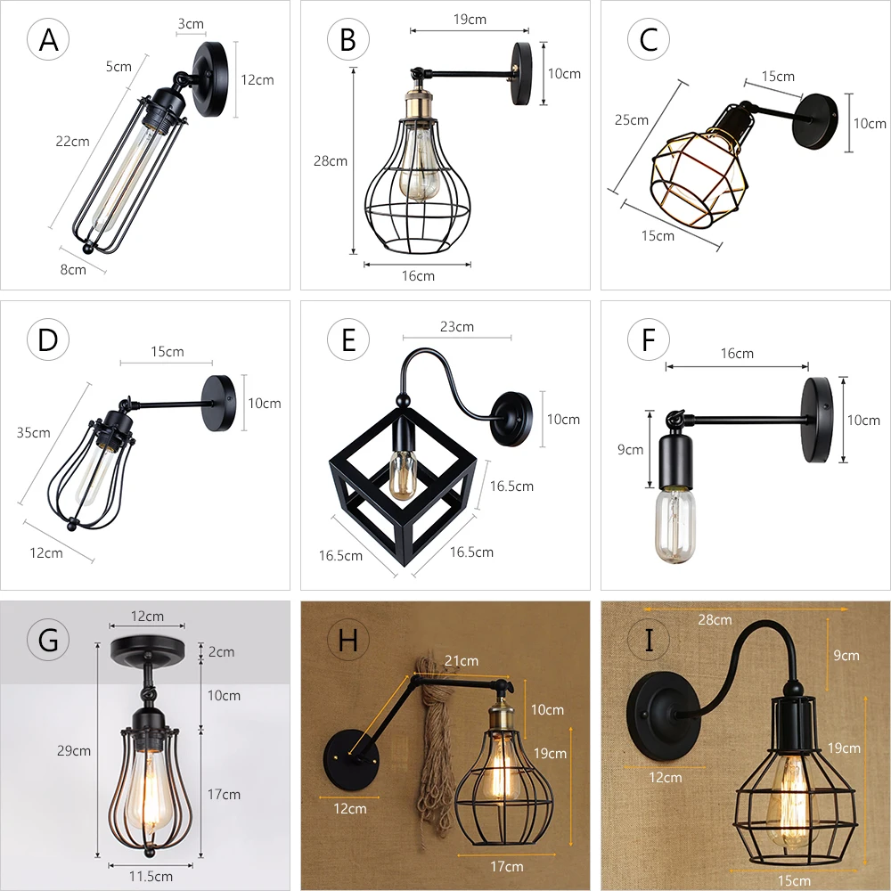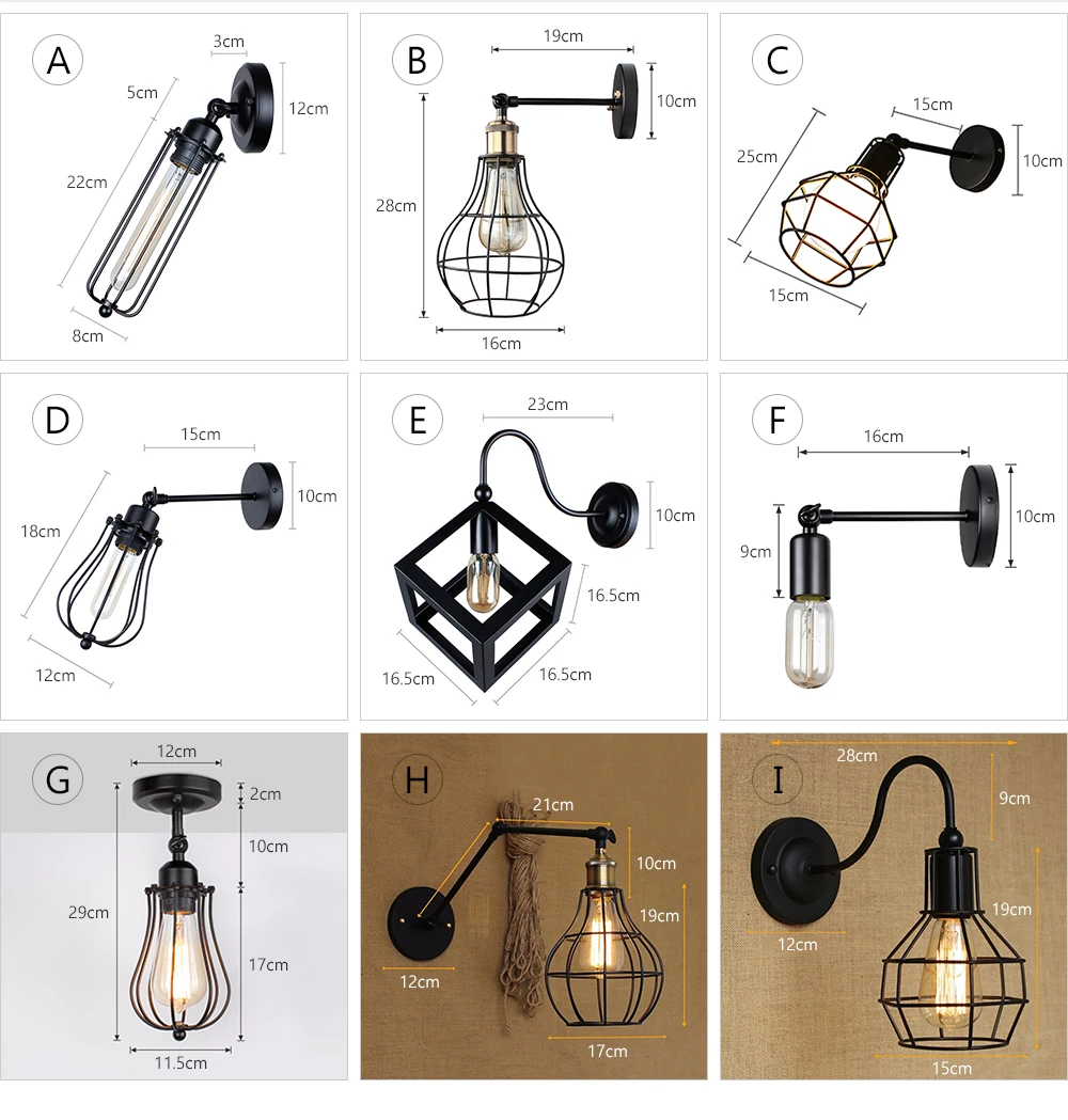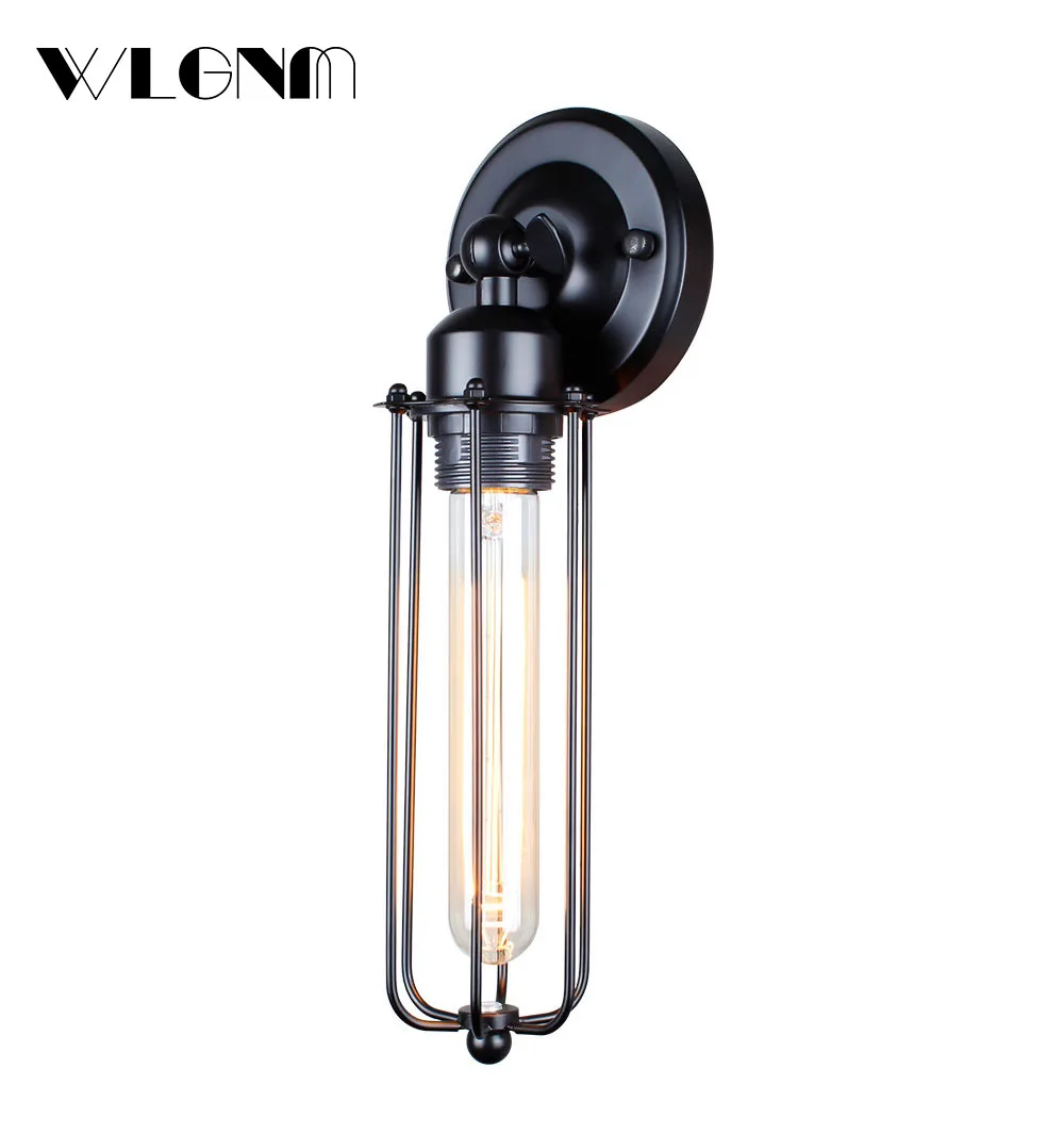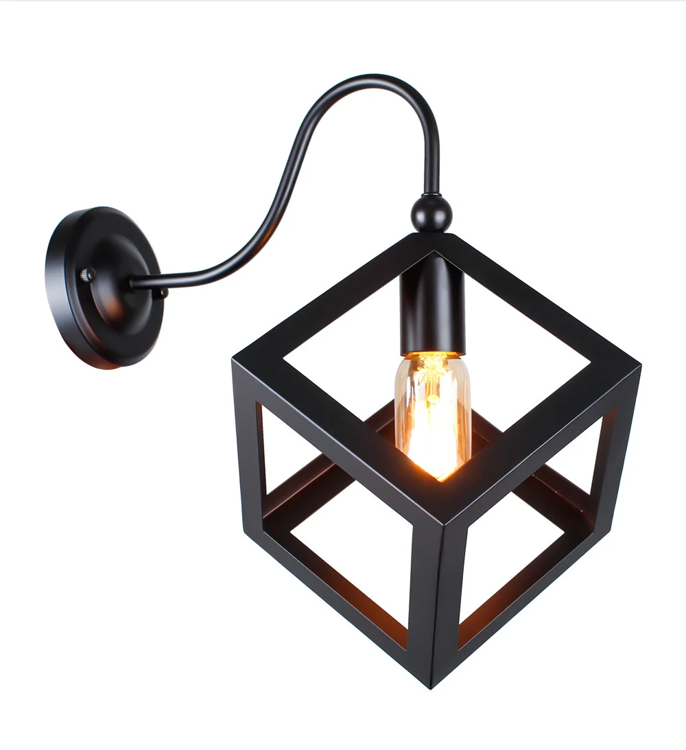 Винтажная промышленная настенная лампа, американский настенный светильник в стиле лофт, простой абажур, E27, светильник в клетку для коридора, ресторана, магазина