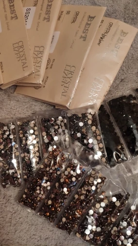 Все здорово, но кристалл АВ в разных наборах имеют немного разный оттенок. Доставка месяц. Оттенок рэинбоу в коробочке, что очень удобно. Стразы очень достойные, конечно не Сваровски и Прициоза, но для Китая отличные.