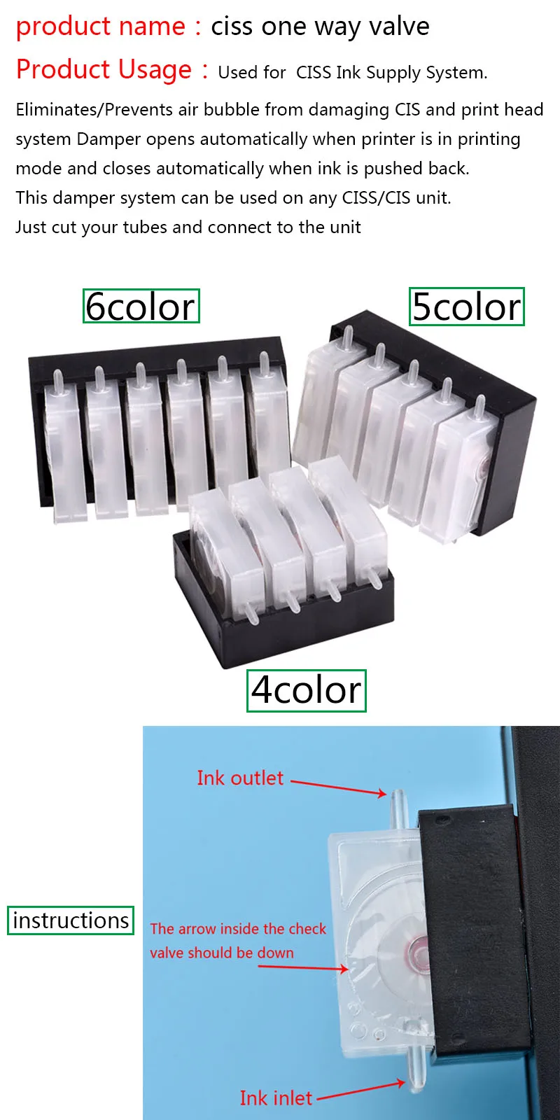 Односторонний клапан CISS, чернильный демпфер, регулирующие клапаны для чернил, 4 цвета, 5 цветов, 6 цветов, для Canon, HP, Epson, струйных принтеров Brother