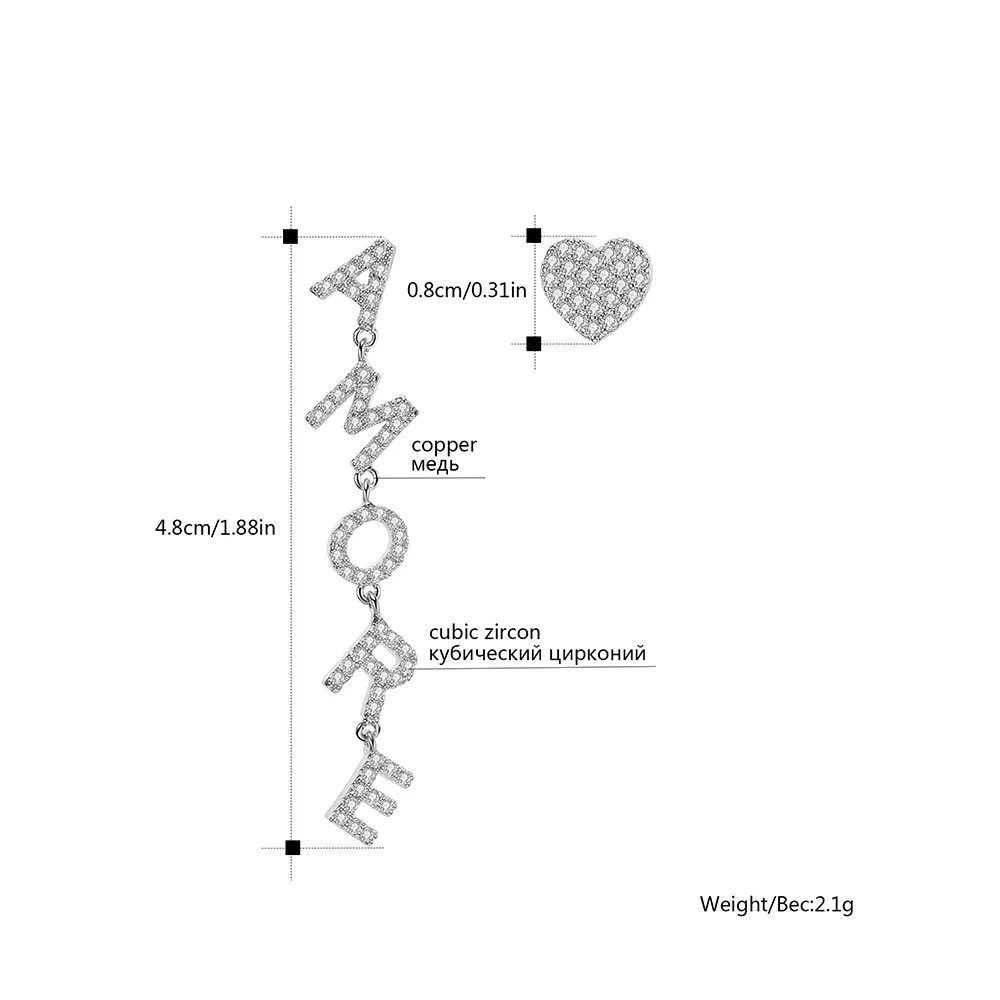 Женские серьги-подвески в виде сердечек с фианитами
