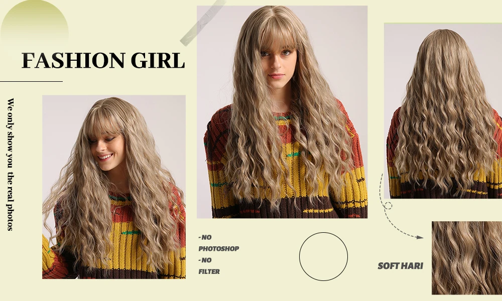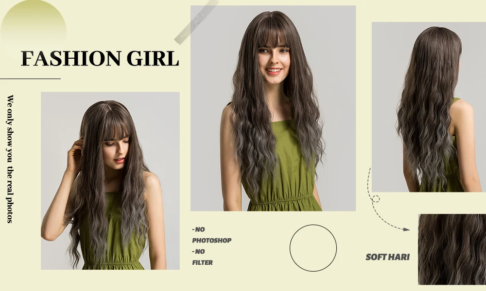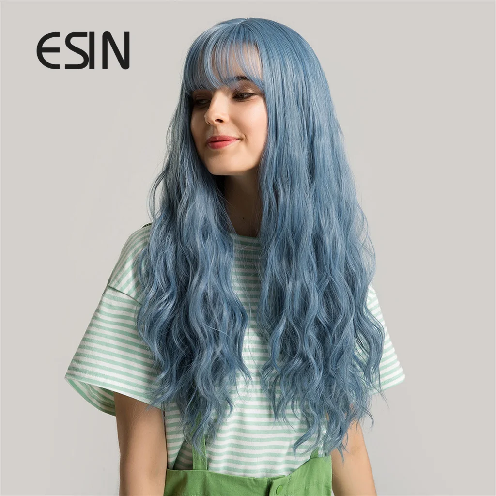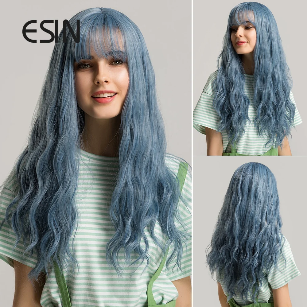 ESIN синтетические волосы зеленые синие длинные натуральные волнистые парики с челкой для женщин парик для косплея термостойкий