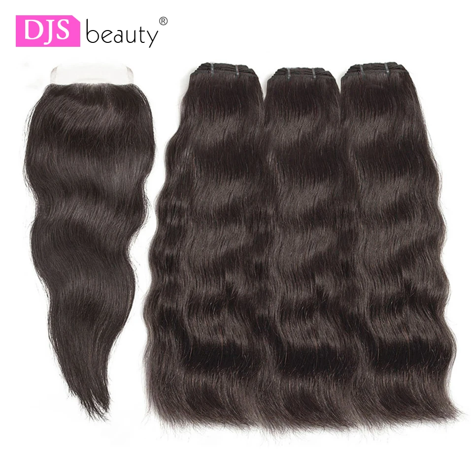 Пряди натуральных прямых волос с застежкой, 100% натуральные человеческие волосы с застежкой, бразильские пучки волос DJSbeauty