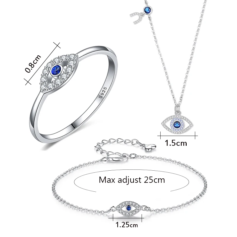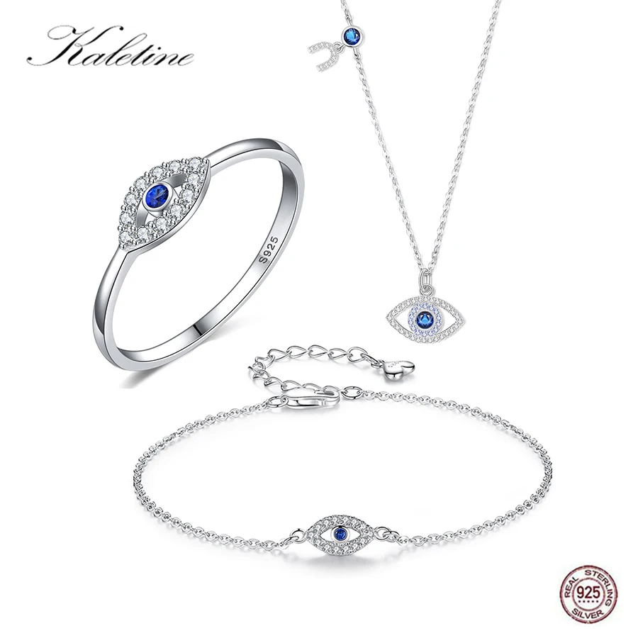 Браслет AKALETINE со сглаза, кольцо из стерлингового серебра 925 пробы, ювелирные наборы, синие наборы ожерелья из камней, ювелирные изделия из Турции, комплект из 3 предметов для женщин