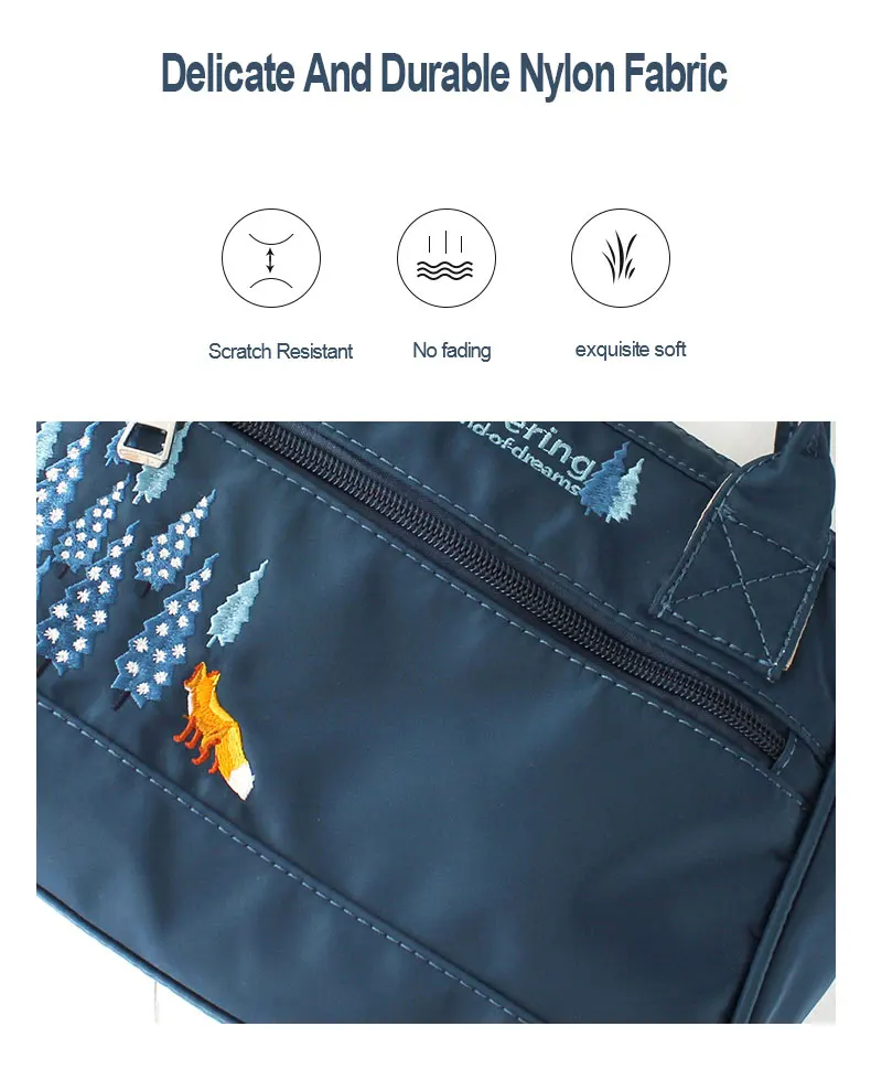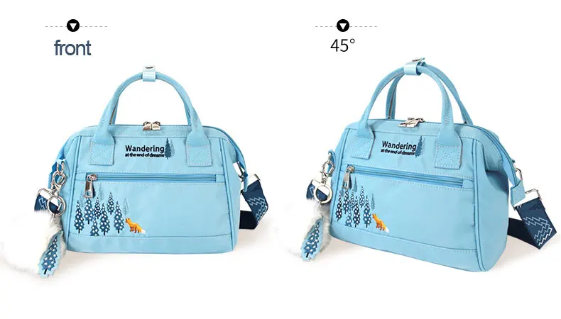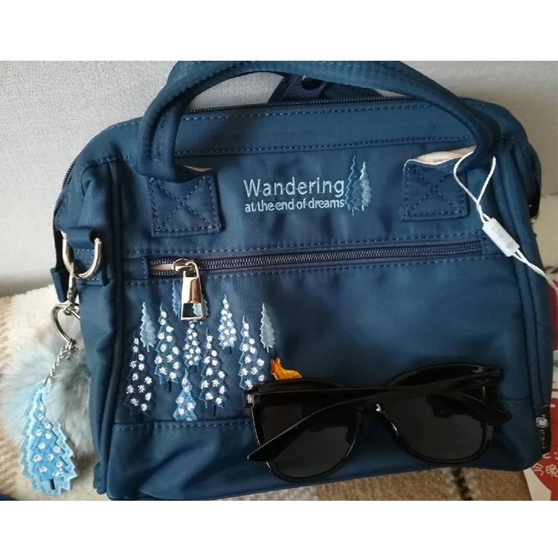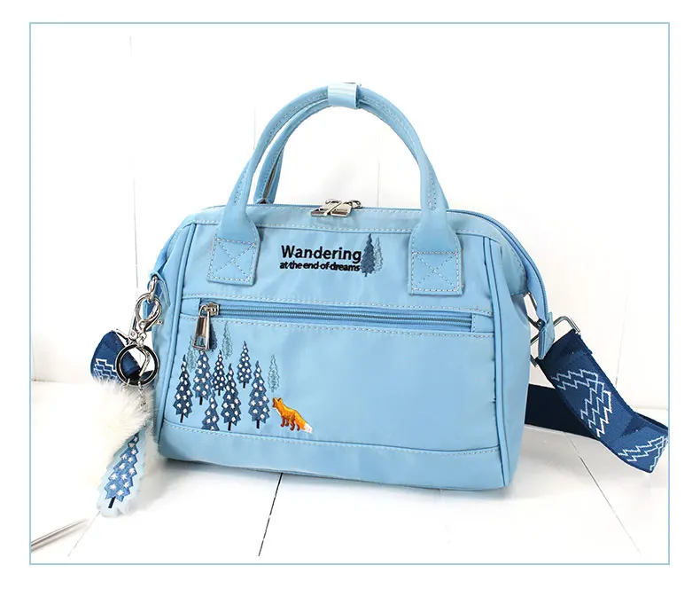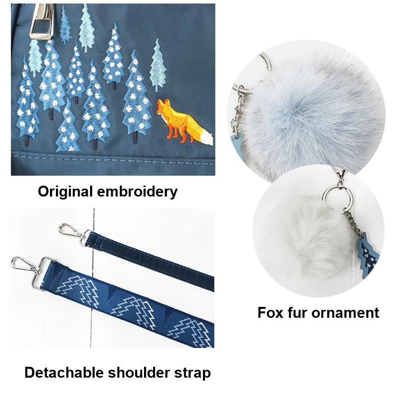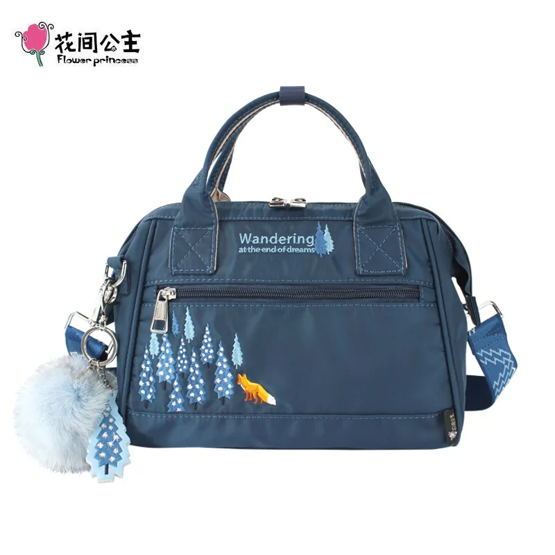 Женская нейлоновая сумка с цветочной вышивкой, украшенная лисьим мехом, на плечо, для путешествий, для девочек, 2019