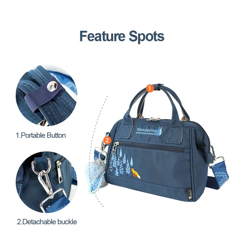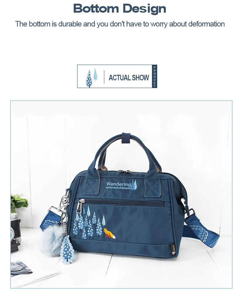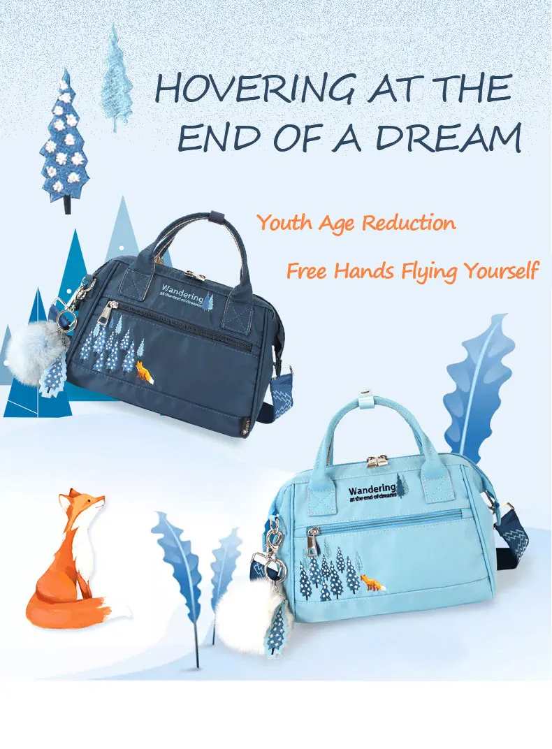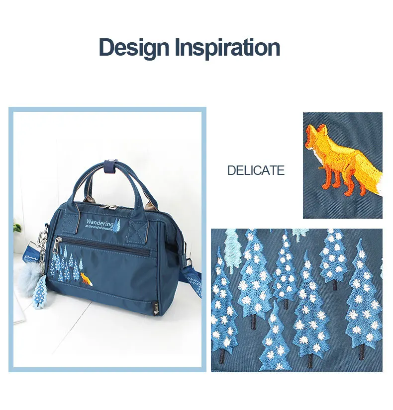Женская нейлоновая сумка с цветочной вышивкой, украшенная лисьим мехом, на плечо, для путешествий, для девочек, 2019