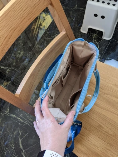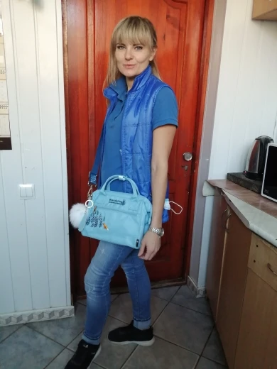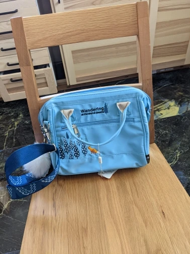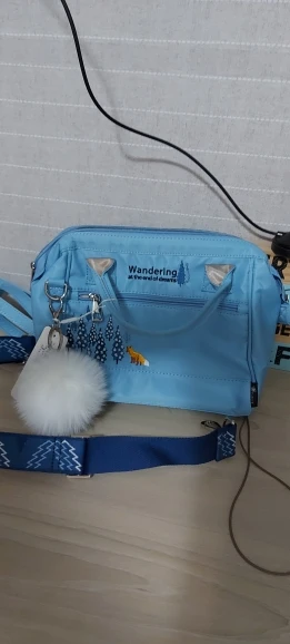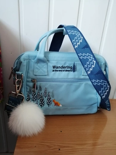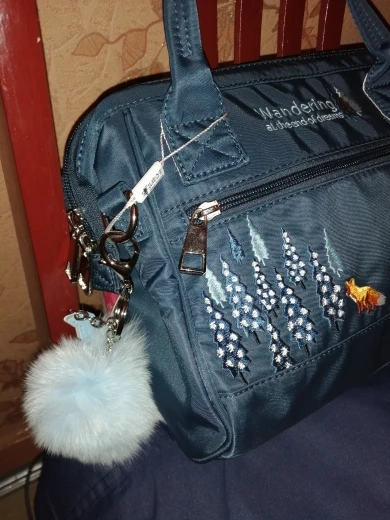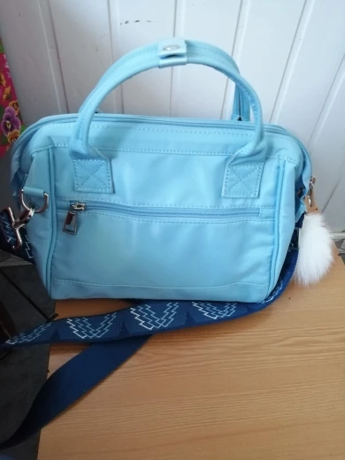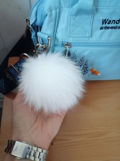 Сумка огонь!!!Пришла очень быстро, всего за неделю! Качество отличное! Швы ровные, жёсткий каркас, очень вместительная, но размер самой сумки не огромный, очень аккуратная. Пушок беленький, такой милый)) В комплекте 2 ремня, тонкий голубой, и толстый синий. Подруга теперь заказала такую же, только синюю