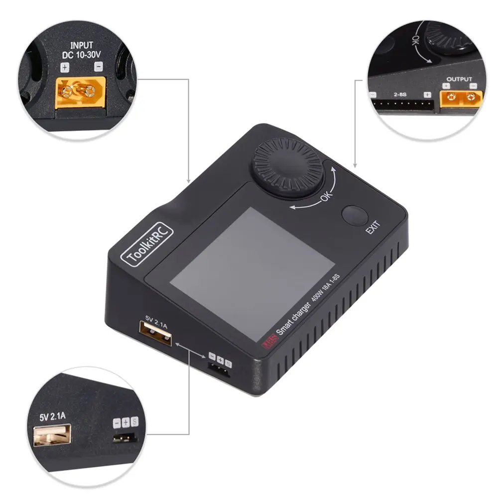 Мини-зарядное устройство ToolkitRC M8S с цветным экраном, 400 Вт, 18 А, выход постоянного тока для 1-8S Lipo LiHV Life Lion NiMh Pb