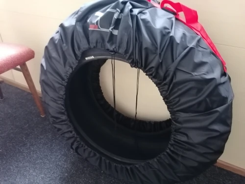 Хорошие чехлы. Для 17 дисков и резины 215*65 подошли с запасом. Ручка не сильно прочная. Держит, но на пределе для колеса в сборе. А вот ремень затяжку не держит, надо будет заменить на что-то