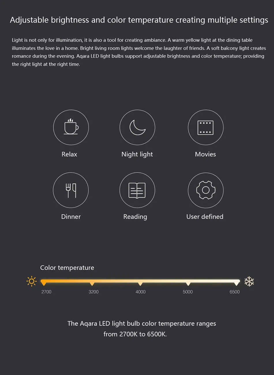 Умсветодиодный Светодиодная лампа Aqara Zigbee, 9 Вт, E27, 2700K-65...
