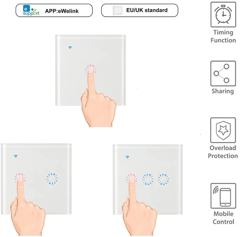 Умный переключатель ewelink, стандарт ЕС, 1 комплект, 1 канал, Домашний Беспроводной Wi-Fi настенный светильник, сенсорный переключатель, настенный прерыватель, требуется нейтральная линия