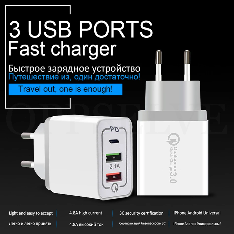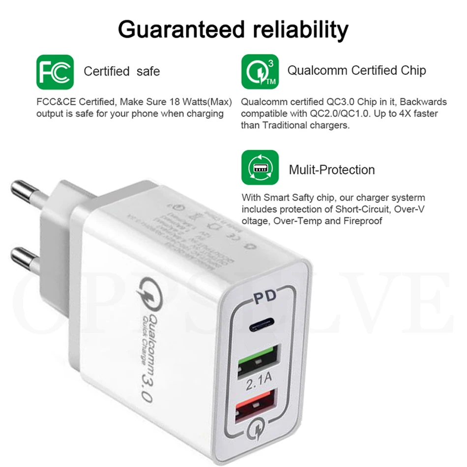 Быстрая зарядка 3,0 USB зарядное устройство type C QC 3,0 зарядное ...