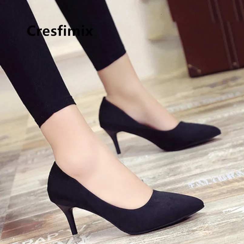 Cresfimixженские модные черные офисные туфли на высоком каблуке; Женские повседневные удобные офисные туфли на высоком каблуке; Сезон весна-лето; Милые синие туфли-лодочки