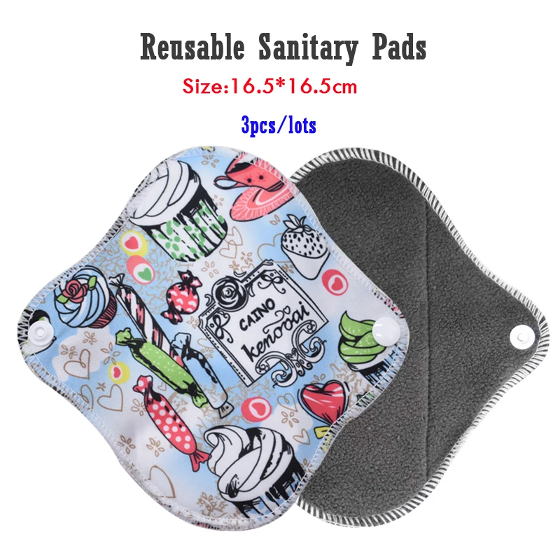 3 шт. Женская тканевая менструальная прокладка, бамбуковый уголь, гигиенические Многоразовые Моющиеся Прокладки