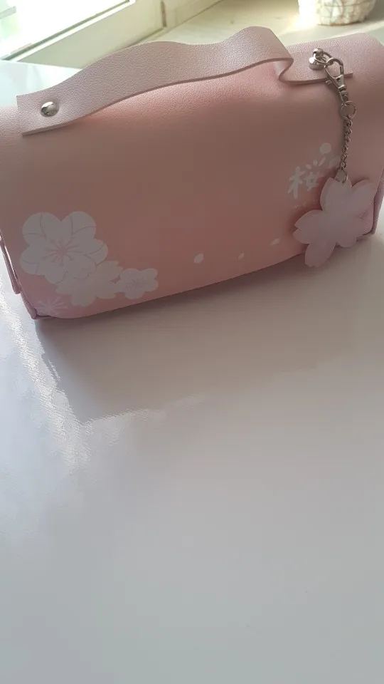 Сумка для карандашей с изображением сакуры из искусственной кожи, чехол для ручки, кавайные канцелярские товары, линейка для школьницы, сладкая Подарочная коробка держатель ластика, для хранения цветов